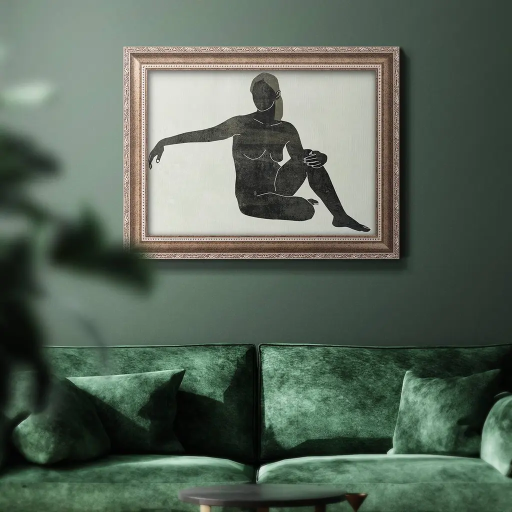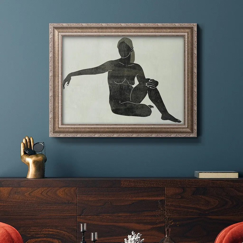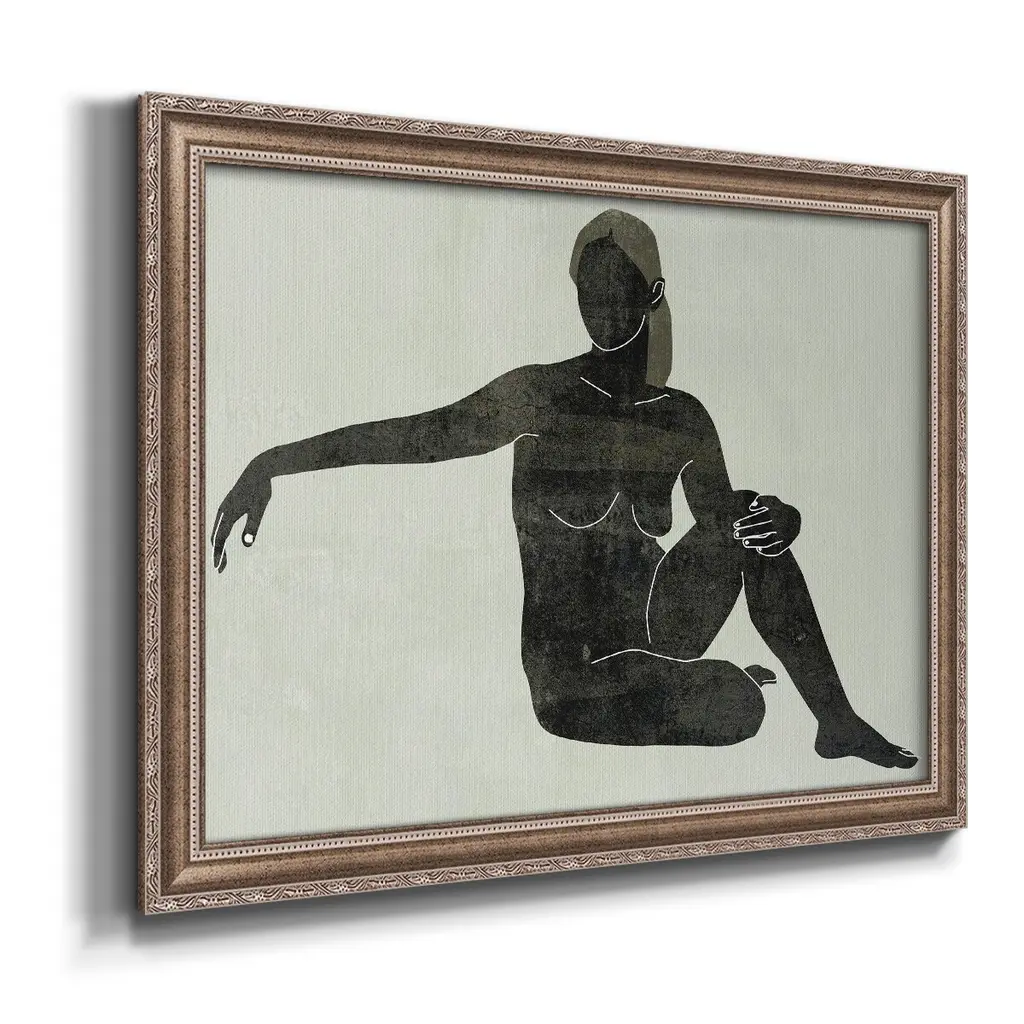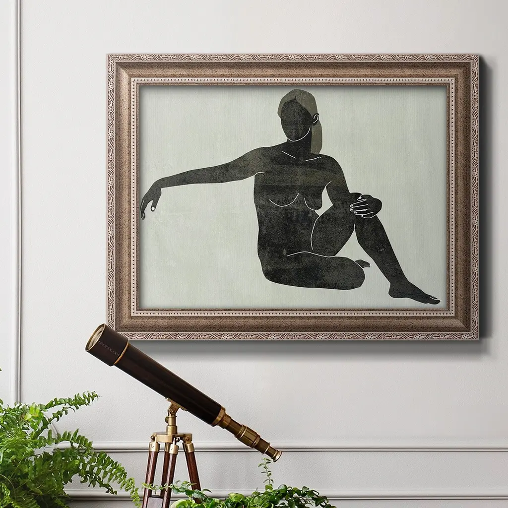 Folded Figure III Premium Framed Canvas- Ready to Hang A Premium Framed Canvas created to last. Framed in distressed wood and available in an array of sizes and colors Featuring a beveled a solid wood stretcher bar, each piece comes ready to hand 3 SIZES AVAILABLE 16''X20'' - Overall Size 18'X27'' - Overall Size 24''x36'' - Overall Size Each piece is made to order. Each piece comes with hanging hardware. Made in the USA Ready to Hang Giclee Paper Print Acrylic Glass Beveled Matt Board