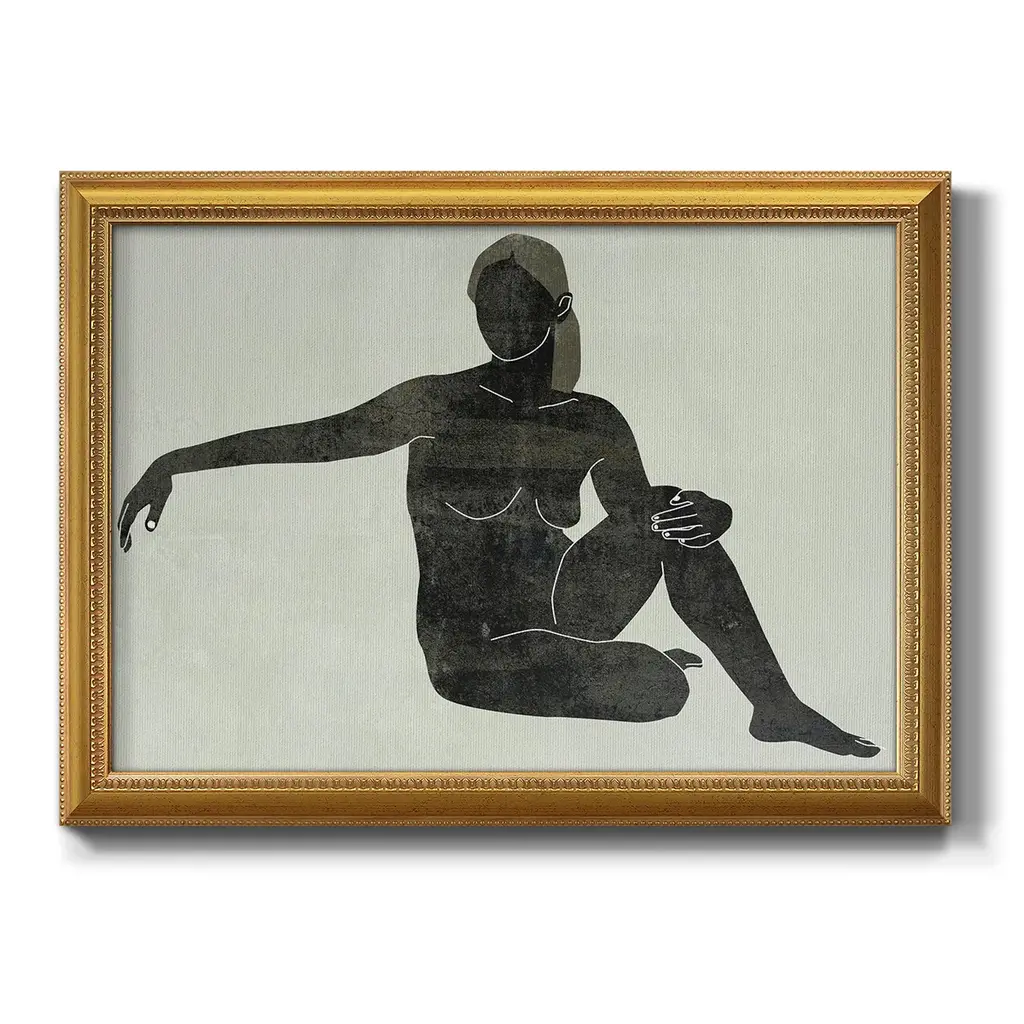Folded Figure III Premium Framed Canvas- Ready to Hang A Premium Framed Canvas created to last. Framed in distressed wood and available in an array of sizes and colors Featuring a beveled a solid wood stretcher bar, each piece comes ready to hand 3 SIZES AVAILABLE 16''X20'' - Overall Size 18'X27'' - Overall Size 24''x36'' - Overall Size Each piece is made to order. Each piece comes with hanging hardware. Made in the USA Ready to Hang Giclee Paper Print Acrylic Glass Beveled Matt Board