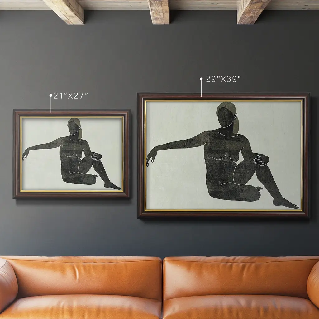 Folded Figure III Premium Framed Canvas- Ready to Hang A Premium Framed Canvas created to last. Framed in distressed wood and available in an array of sizes and colors Featuring a beveled a solid wood stretcher bar, each piece comes ready to hand 3 SIZES AVAILABLE 16''X20'' - Overall Size 18'X27'' - Overall Size 24''x36'' - Overall Size Each piece is made to order. Each piece comes with hanging hardware. Made in the USA Ready to Hang Giclee Paper Print Acrylic Glass Beveled Matt Board
