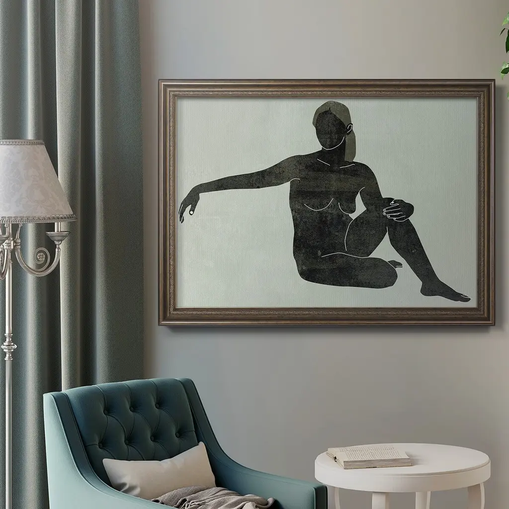 Folded Figure III Premium Framed Canvas- Ready to Hang A Premium Framed Canvas created to last. Framed in distressed wood and available in an array of sizes and colors Featuring a beveled a solid wood stretcher bar, each piece comes ready to hand 3 SIZES AVAILABLE 16''X20'' - Overall Size 18'X27'' - Overall Size 24''x36'' - Overall Size Each piece is made to order. Each piece comes with hanging hardware. Made in the USA Ready to Hang Giclee Paper Print Acrylic Glass Beveled Matt Board