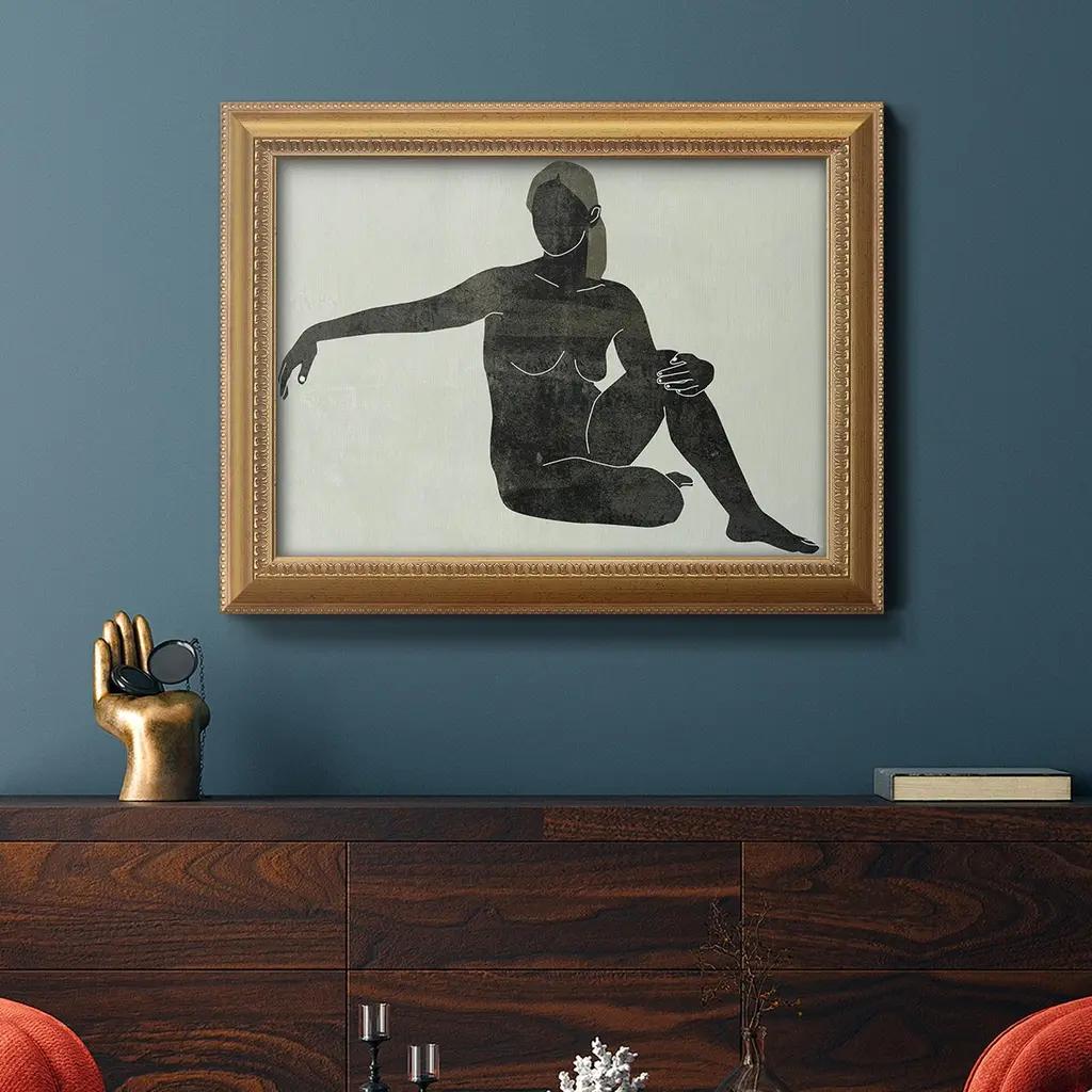 Folded Figure III Premium Framed Canvas- Ready to Hang A Premium Framed Canvas created to last. Framed in distressed wood and available in an array of sizes and colors Featuring a beveled a solid wood stretcher bar, each piece comes ready to hand 3 SIZES AVAILABLE 16''X20'' - Overall Size 18'X27'' - Overall Size 24''x36'' - Overall Size Each piece is made to order. Each piece comes with hanging hardware. Made in the USA Ready to Hang Giclee Paper Print Acrylic Glass Beveled Matt Board