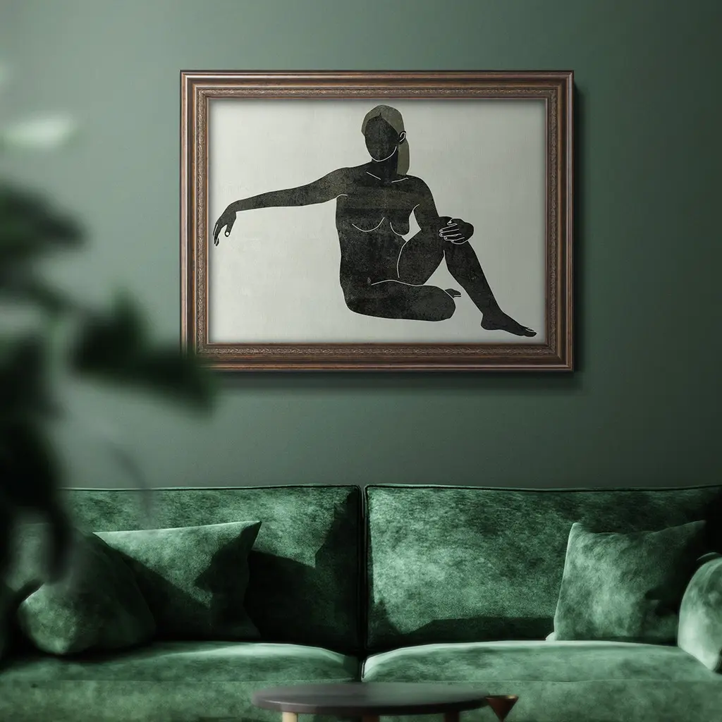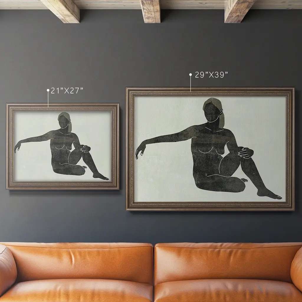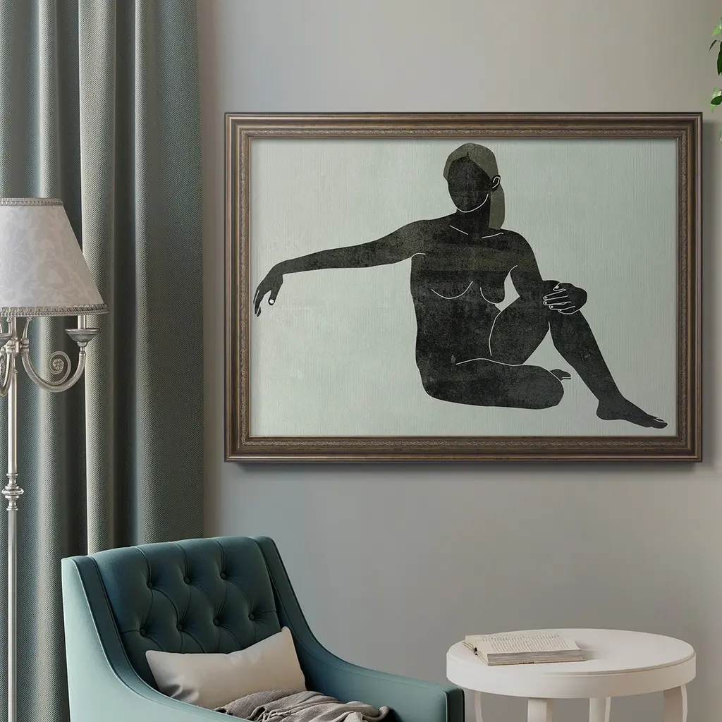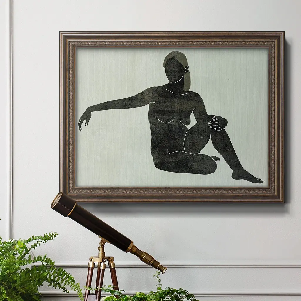 Folded Figure III Premium Framed Canvas- Ready to Hang A Premium Framed Canvas created to last. Framed in distressed wood and available in an array of sizes and colors Featuring a beveled a solid wood stretcher bar, each piece comes ready to hand 3 SIZES AVAILABLE 16''X20'' - Overall Size 18'X27'' - Overall Size 24''x36'' - Overall Size Each piece is made to order. Each piece comes with hanging hardware. Made in the USA Ready to Hang Giclee Paper Print Acrylic Glass Beveled Matt Board