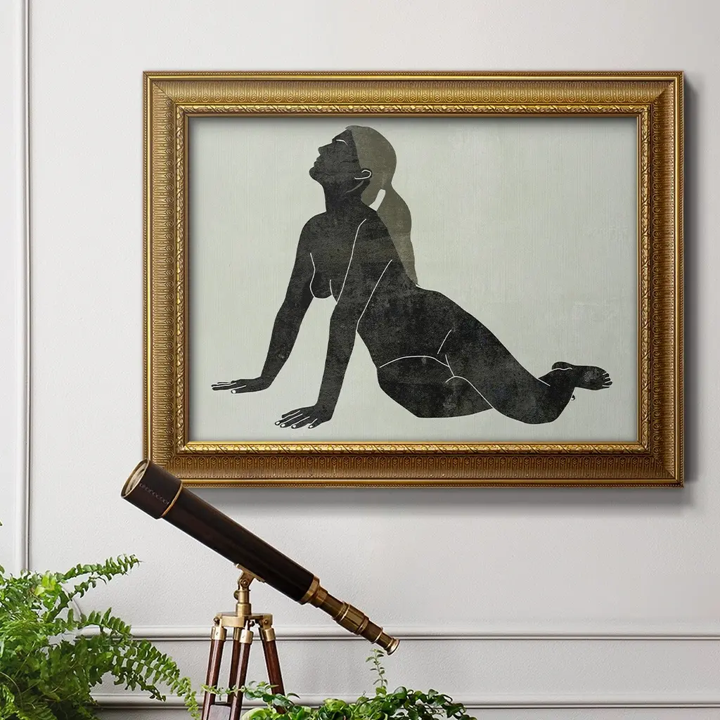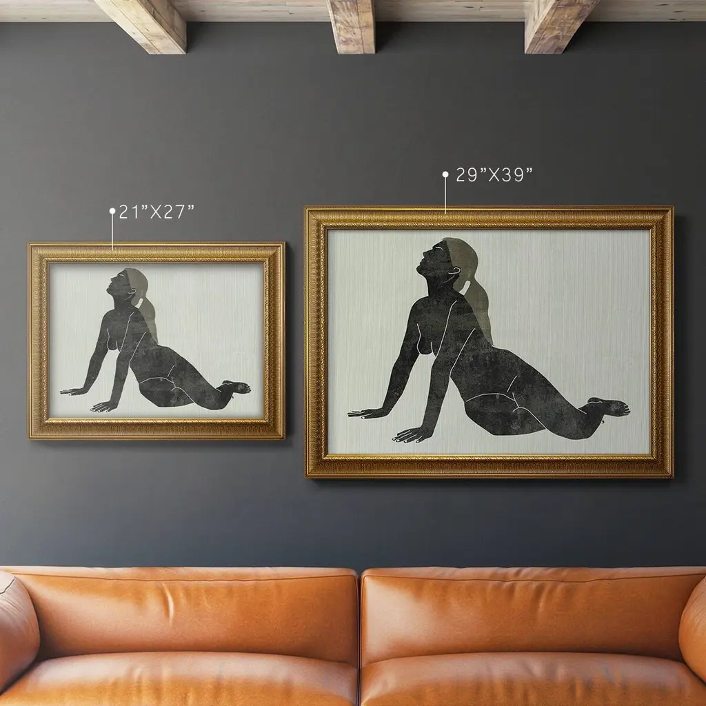 Folded Figure IV Premium Framed Canvas- Ready to Hang A Premium Framed Canvas created to last. Framed in distressed wood and available in an array of sizes and colors Featuring a beveled a solid wood stretcher bar, each piece comes ready to hand 3 SIZES AVAILABLE 16''X20'' - Overall Size 18'X27'' - Overall Size 24''x36'' - Overall Size Each piece is made to order. Each piece comes with hanging hardware. Made in the USA Ready to Hang Giclee Paper Print Acrylic Glass Beveled Matt Board