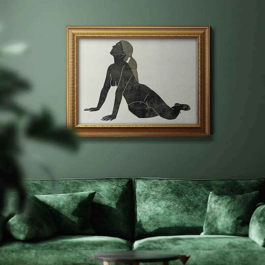 Folded Figure IV Premium Framed Canvas- Ready to Hang A Premium Framed Canvas created to last. Framed in distressed wood and available in an array of sizes and colors Featuring a beveled a solid wood stretcher bar, each piece comes ready to hand 3 SIZES AVAILABLE 16''X20'' - Overall Size 18'X27'' - Overall Size 24''x36'' - Overall Size Each piece is made to order. Each piece comes with hanging hardware. Made in the USA Ready to Hang Giclee Paper Print Acrylic Glass Beveled Matt Board