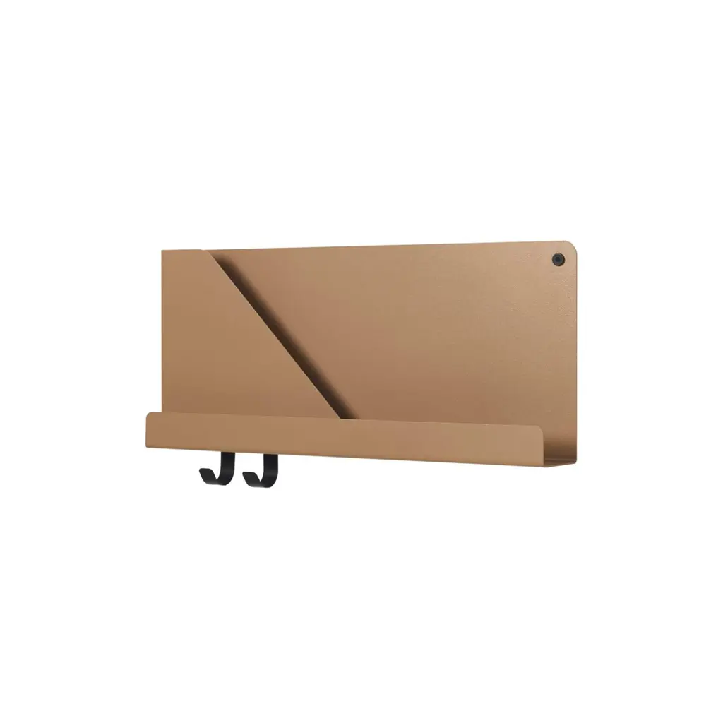 Designer Johan van Hengel bends his Folded Shelves into shape with just a single sheet of metal. Creating storage pockets much like a paper envelope to hold and separate items, his wall shelf from Copenhagen's Muuto features gently rounded corners and contrasting mounting bolts and hooks for hanging scarves and keys. A useful and modern storage solution for nearly any room- think of it in the entry, the kitchen, the office or even bedside. Or create a personal display with treasured objects and artwork.