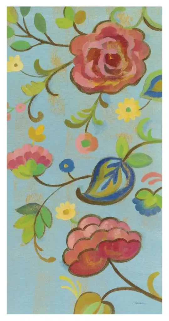 "Folk Song Floral Iii" Digital Paper Print By Silvia Vassileva, 32"x62"