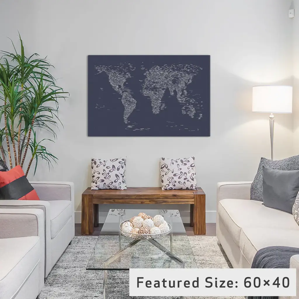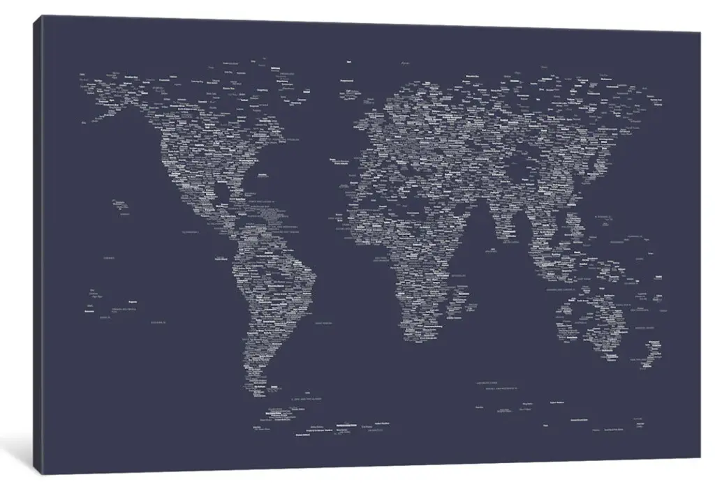 "Font World Map, Navy Blue" Wrapped Canvas Print, 26x18x1.5