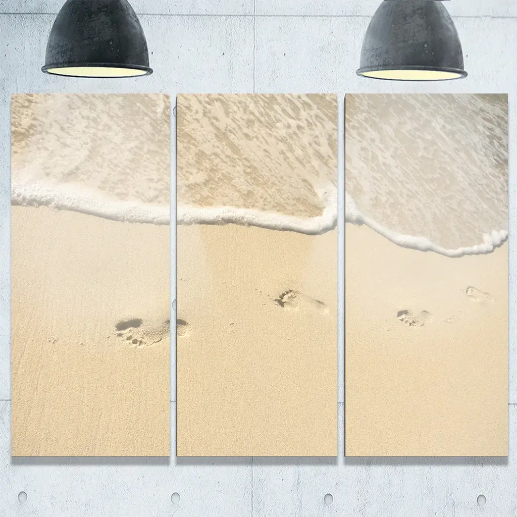 "Footprints In Sand On The Beach" Metal Wall Art, 3 Panels, 36"x28"