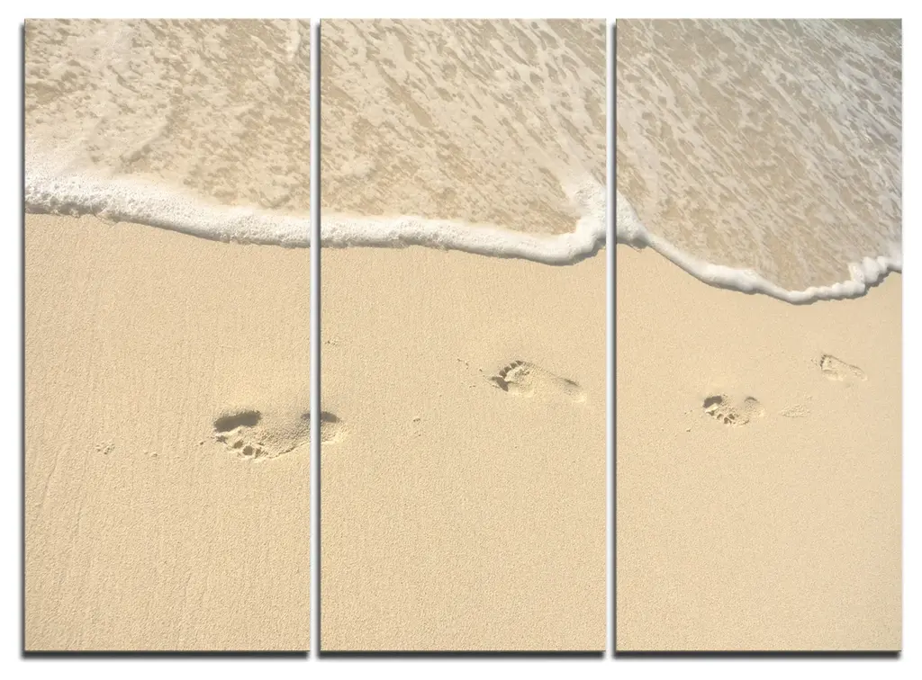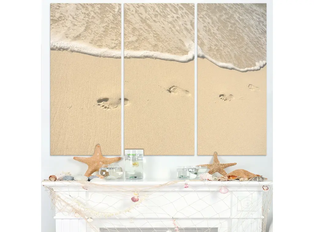 "Footprints In Sand On The Beach" Wall Art, 3 Panels, 36"x28"