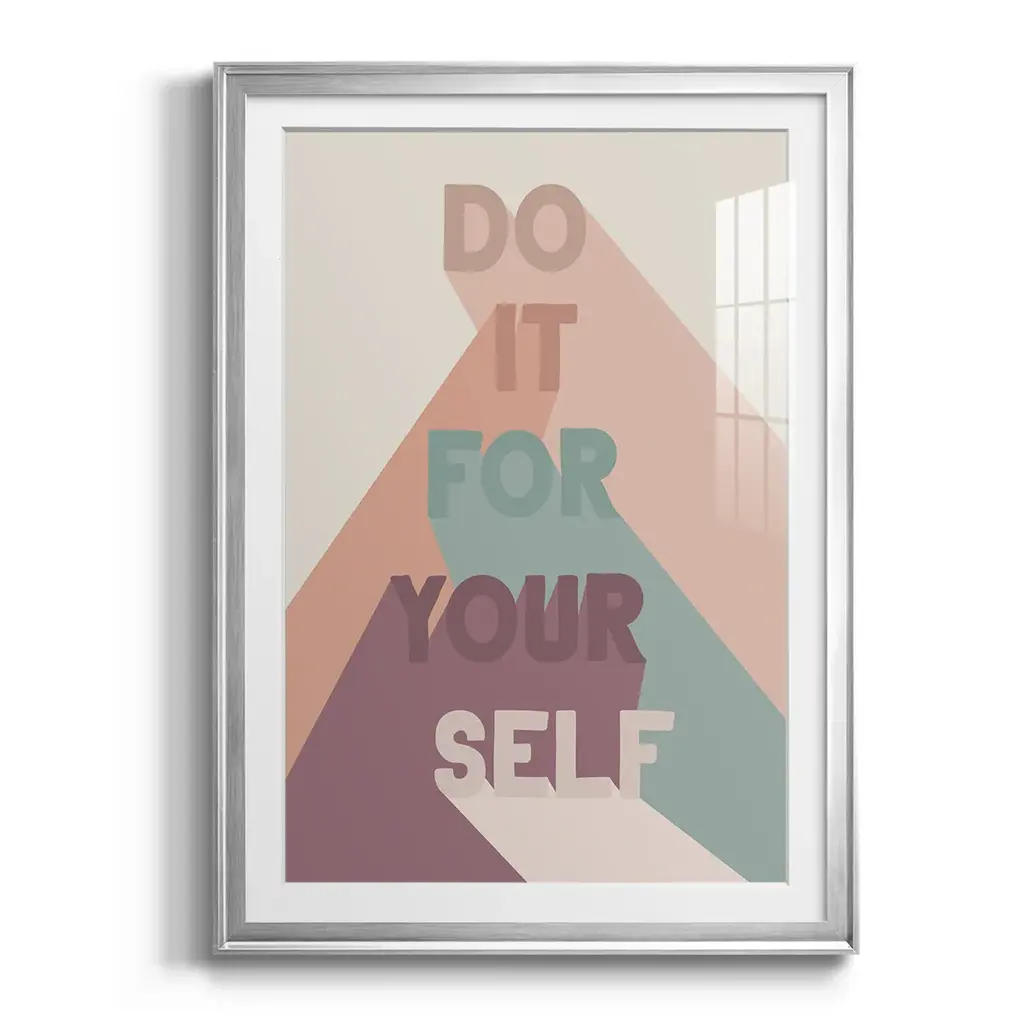 For Yourself Premium Framed Print - Ready to Hang A Premium Framed Print created to last. Framed in distressed wood and available in an array of sizes and colors Featuring a beveled a solid wood stretcher bar, each piece comes ready to hand 4 SIZES AVAILABLE 30.5''X42.5'' - Overall Size 26.5'X36.5'' - Overall Size 22.5''x30.5'' - Overall Size 18.5''x24.5'' - Overall Size Each piece is made to order. Each piece comes with hanging hardware. Made in the USA Ready to Hang Giclee Paper Print Acrylic Glass Beveled Matt Board