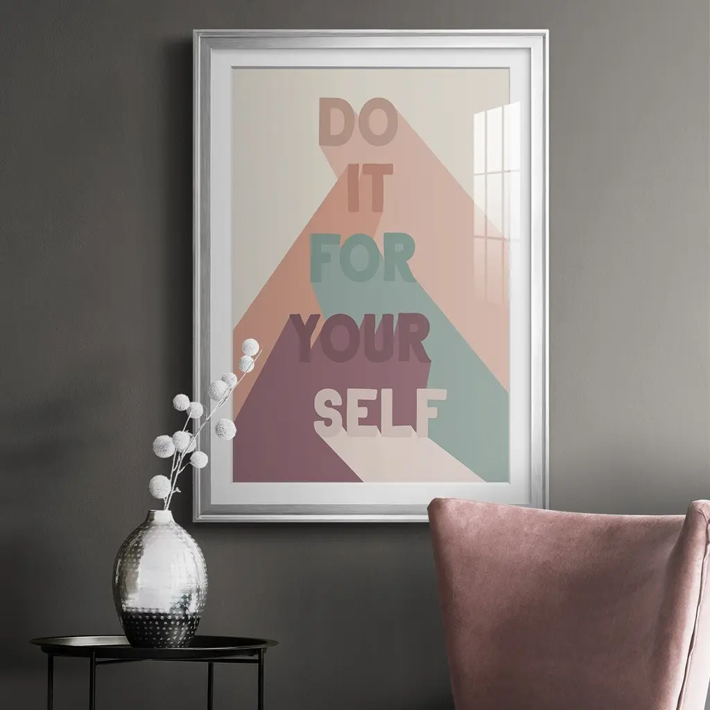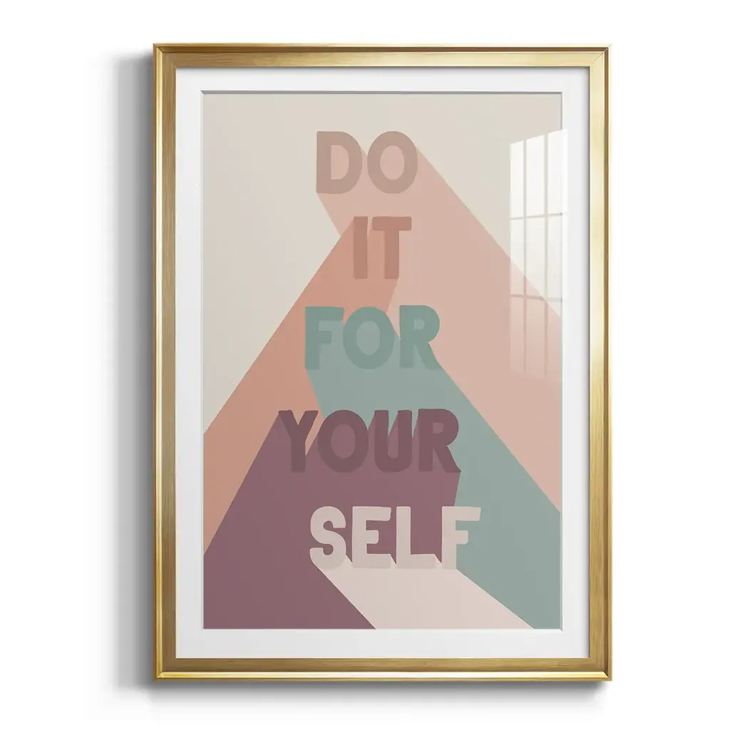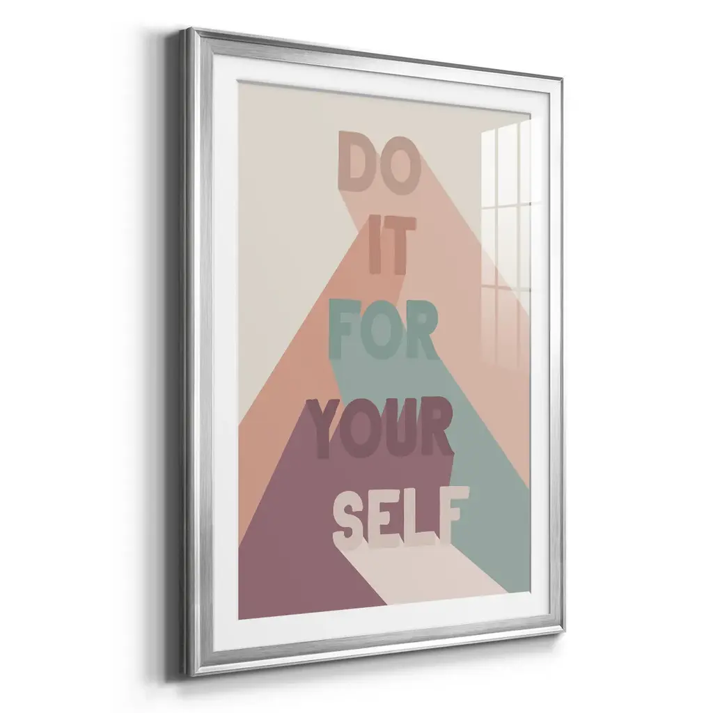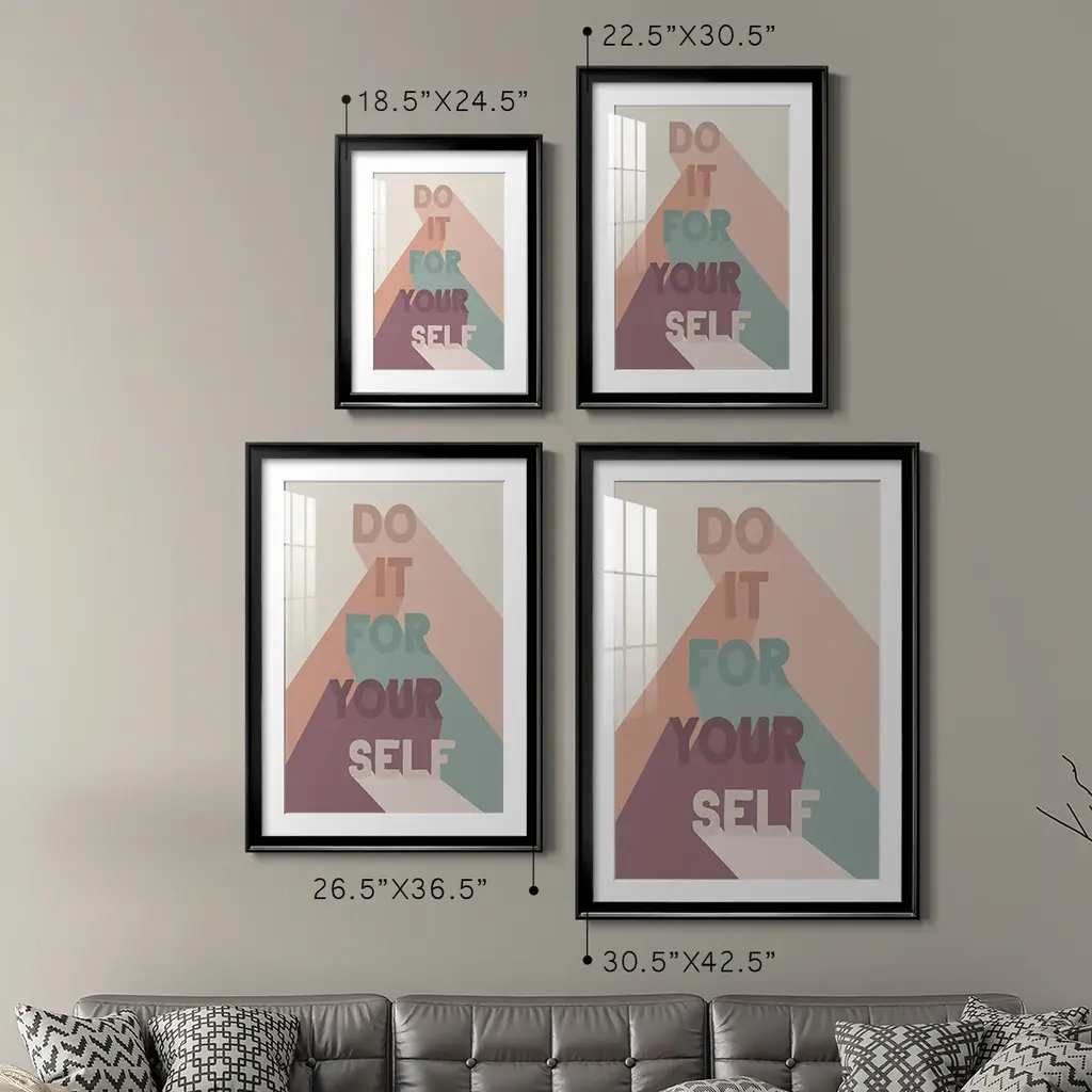For Yourself Premium Framed Print - Ready to Hang A Premium Framed Print created to last. Framed in distressed wood and available in an array of sizes and colors Featuring a beveled a solid wood stretcher bar, each piece comes ready to hand 4 SIZES AVAILABLE 30.5''X42.5'' - Overall Size 26.5'X36.5'' - Overall Size 22.5''x30.5'' - Overall Size 18.5''x24.5'' - Overall Size Each piece is made to order. Each piece comes with hanging hardware. Made in the USA Ready to Hang Giclee Paper Print Acrylic Glass Beveled Matt Board