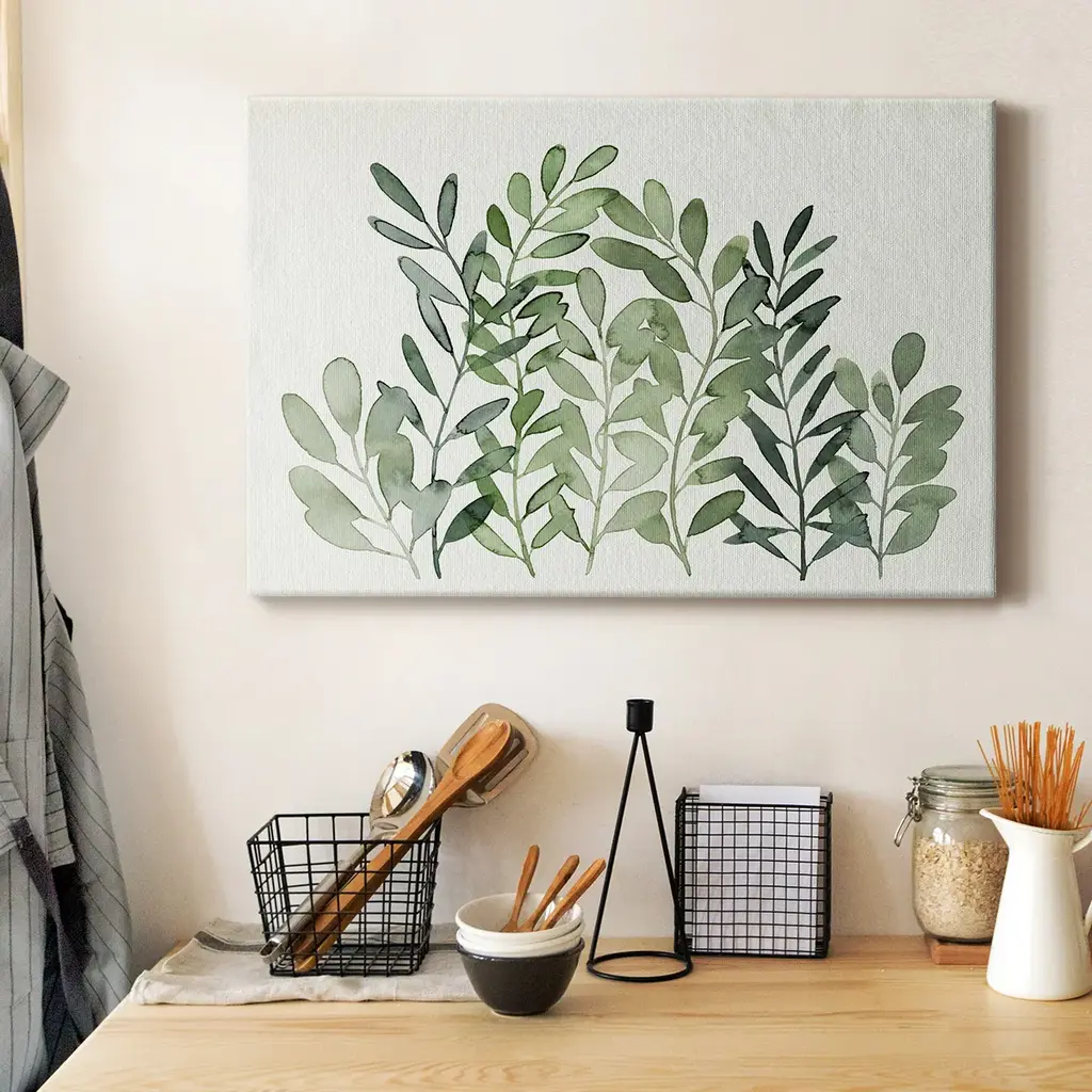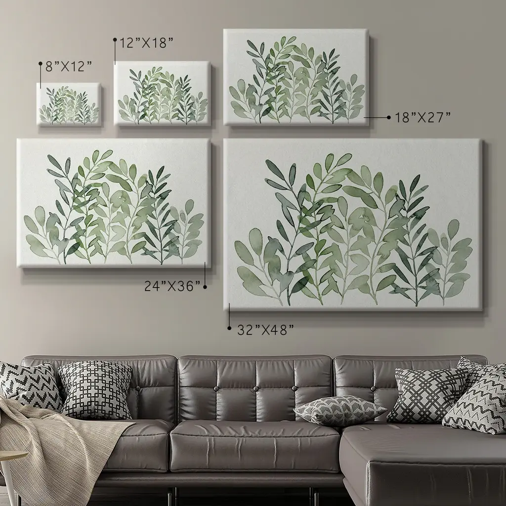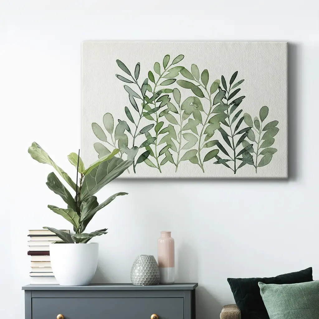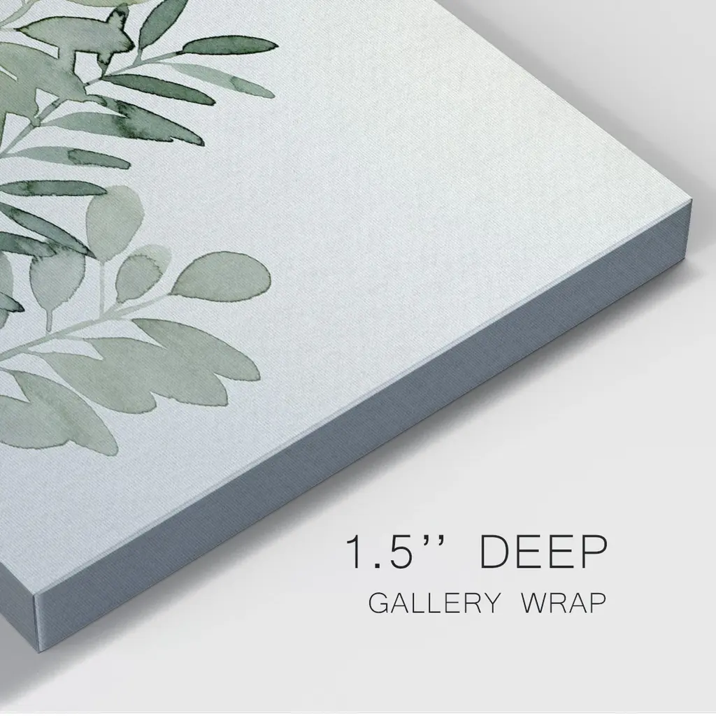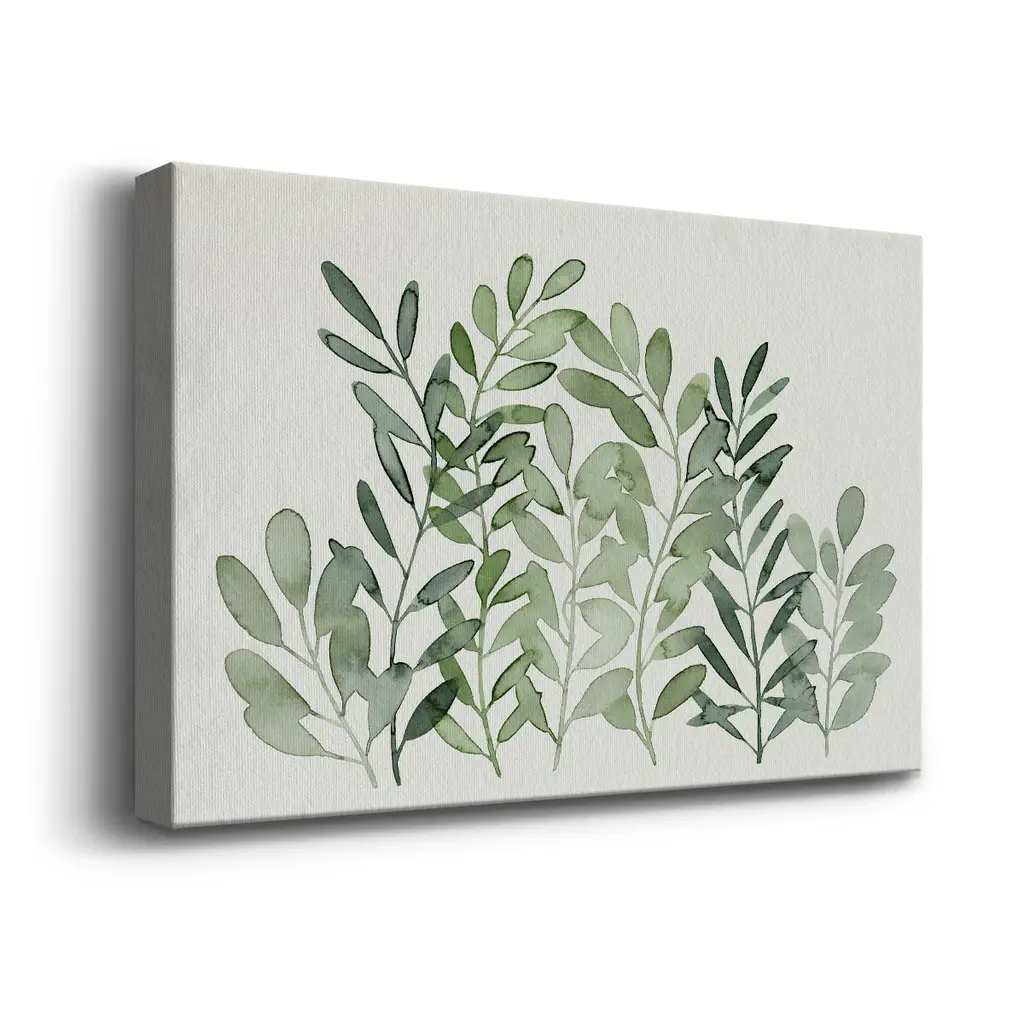 Foraged Greens II Premium Gallery Wrapped Canvas - Ready to Hang A premium hand stretched gallery wrapped canvas print created to last. Featuring a beveled a solid wood stretcher bar, each piece comes ready to hand 6 SIZES AVAILABLE 8''X12'' - Overall Size 12''X18'' - Overall Size 18''X27'' - Overall Size 24''x36'' - Overall Size 32''x48'' - Overall Size 40''x60'' - Overall Size Each piece is made to order. Built to Last Each piece comes ready to hang Solid wood stretcher Fade and Water resistant Made domestically