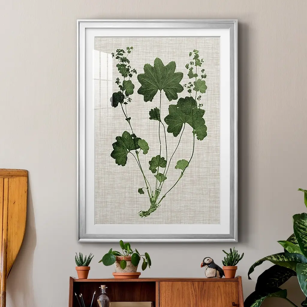 Forest Foliage on Linen IV Premium Framed Print - Ready to Hang A Premium Framed Print created to last. Framed in distressed wood and available in an array of sizes and colors Featuring a beveled a solid wood stretcher bar, each piece comes ready to hand 4 SIZES AVAILABLE 30.5''X42.5'' - Overall Size 26.5'X36.5'' - Overall Size 22.5''x30.5'' - Overall Size 18.5''x24.5'' - Overall Size Each piece is made to order. Each piece comes with hanging hardware. Made in the USA Ready to Hang Giclee Paper Print Acrylic Glass Beveled Matt Board