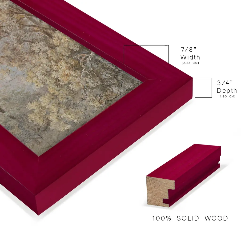 Forest Fresco II -EZ SWITCH Framed Print w/glass-Cherry Red A delightful, framed print. Featuring a solid wood frame with real wood glass. This premium print is giclee quality. In addition, every frame features a removable back and table top stand. This allows you to change your art in the future or to just stand the art on a table for a new look. We are sure you'll enjoy our new series of EZ SWITCH Framed Art. Solid Wood Frame Real Glass Removable / Replaceable Art Built in Tabletop Stand Sizes range from 4x6 up to 12x15 - buy just one or pair them up as sets as you see fit.