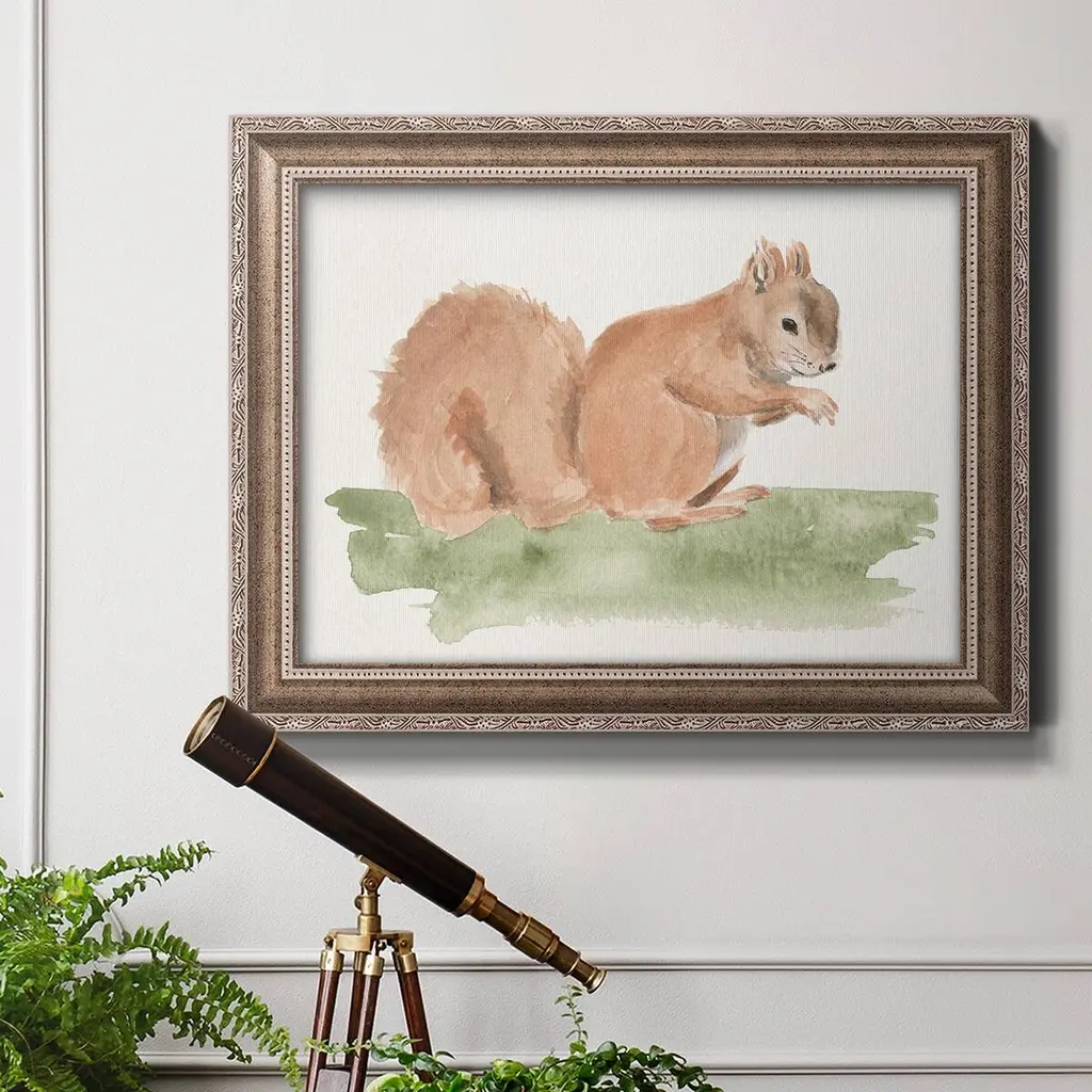 Forest Resident II Premium Framed Canvas- Ready to Hang A Premium Framed Canvas created to last. Framed in distressed wood and available in an array of sizes and colors Featuring a beveled a solid wood stretcher bar, each piece comes ready to hand 3 SIZES AVAILABLE 16''X20'' - Overall Size 18'X27'' - Overall Size 24''x36'' - Overall Size Each piece is made to order. Each piece comes with hanging hardware. Made in the USA Ready to Hang Giclee Paper Print Acrylic Glass Beveled Matt Board
