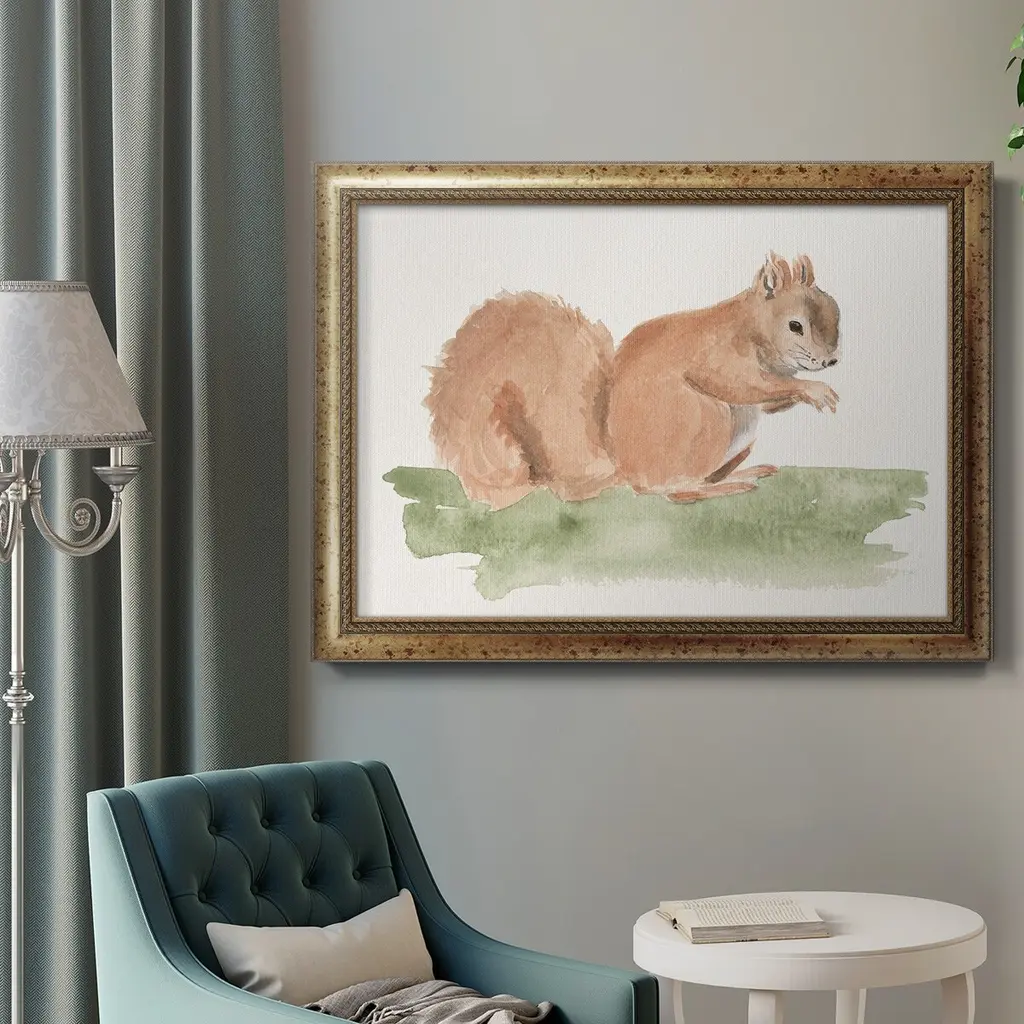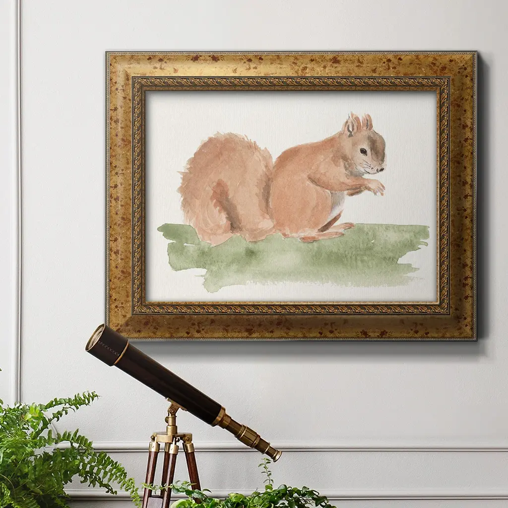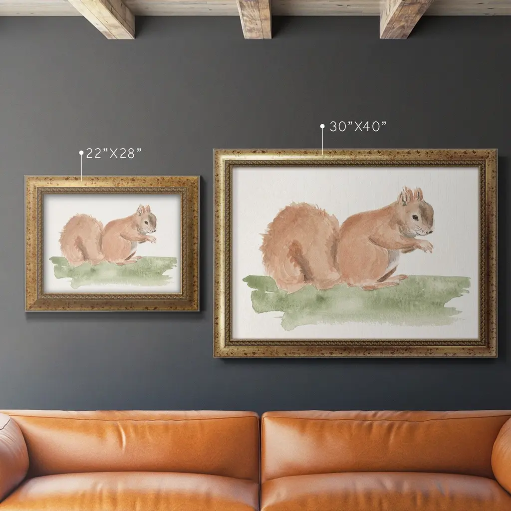 Forest Resident II Premium Framed Canvas- Ready to Hang A Premium Framed Canvas created to last. Framed in distressed wood and available in an array of sizes and colors Featuring a beveled a solid wood stretcher bar, each piece comes ready to hand 3 SIZES AVAILABLE 16''X20'' - Overall Size 18'X27'' - Overall Size 24''x36'' - Overall Size Each piece is made to order. Each piece comes with hanging hardware. Made in the USA Ready to Hang Giclee Paper Print Acrylic Glass Beveled Matt Board
