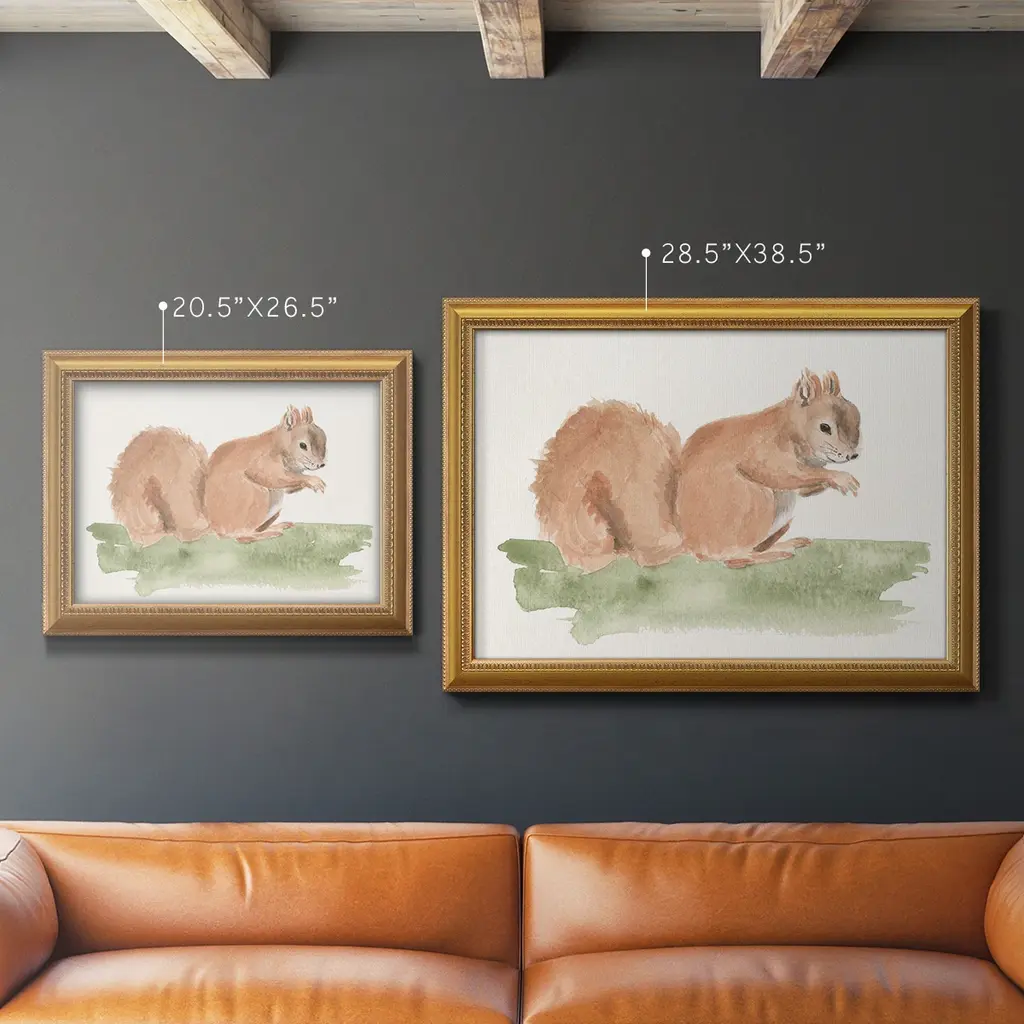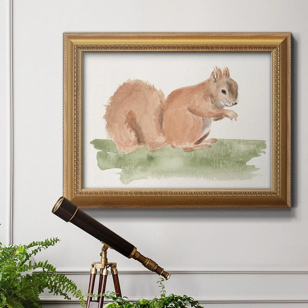 Forest Resident II Premium Framed Canvas- Ready to Hang A Premium Framed Canvas created to last. Framed in distressed wood and available in an array of sizes and colors Featuring a beveled a solid wood stretcher bar, each piece comes ready to hand 3 SIZES AVAILABLE 16''X20'' - Overall Size 18'X27'' - Overall Size 24''x36'' - Overall Size Each piece is made to order. Each piece comes with hanging hardware. Made in the USA Ready to Hang Giclee Paper Print Acrylic Glass Beveled Matt Board