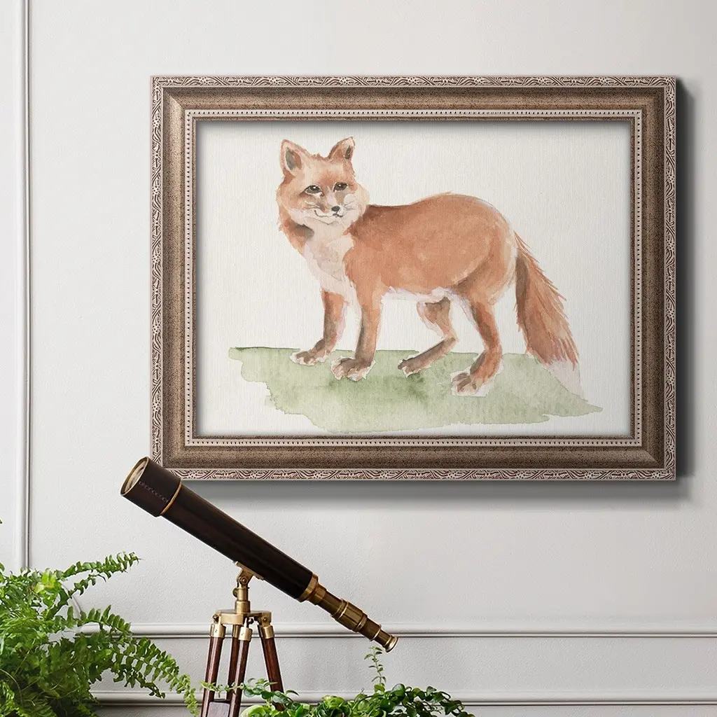 Forest Resident IV Premium Framed Canvas- Ready to Hang A Premium Framed Canvas created to last. Framed in distressed wood and available in an array of sizes and colors Featuring a beveled a solid wood stretcher bar, each piece comes ready to hand 3 SIZES AVAILABLE 16''X20'' - Overall Size 18'X27'' - Overall Size 24''x36'' - Overall Size Each piece is made to order. Each piece comes with hanging hardware. Made in the USA Ready to Hang Giclee Paper Print Acrylic Glass Beveled Matt Board