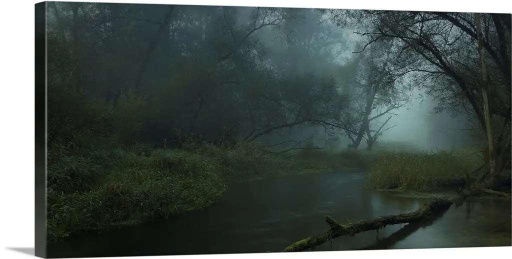 "Forest With Green Fog In Morning" Landscape Photo Wall Art, 32"x16"