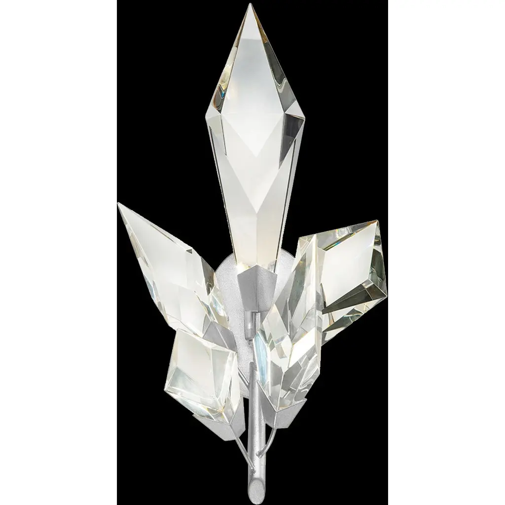Inspired by nature and its majestic forests, this silver leafed luxury LED bath fixture features modern branches adorned with bold, hand-cut faceted crystal leaves. Also available in gold leaf. Includes decorative bulb(s).