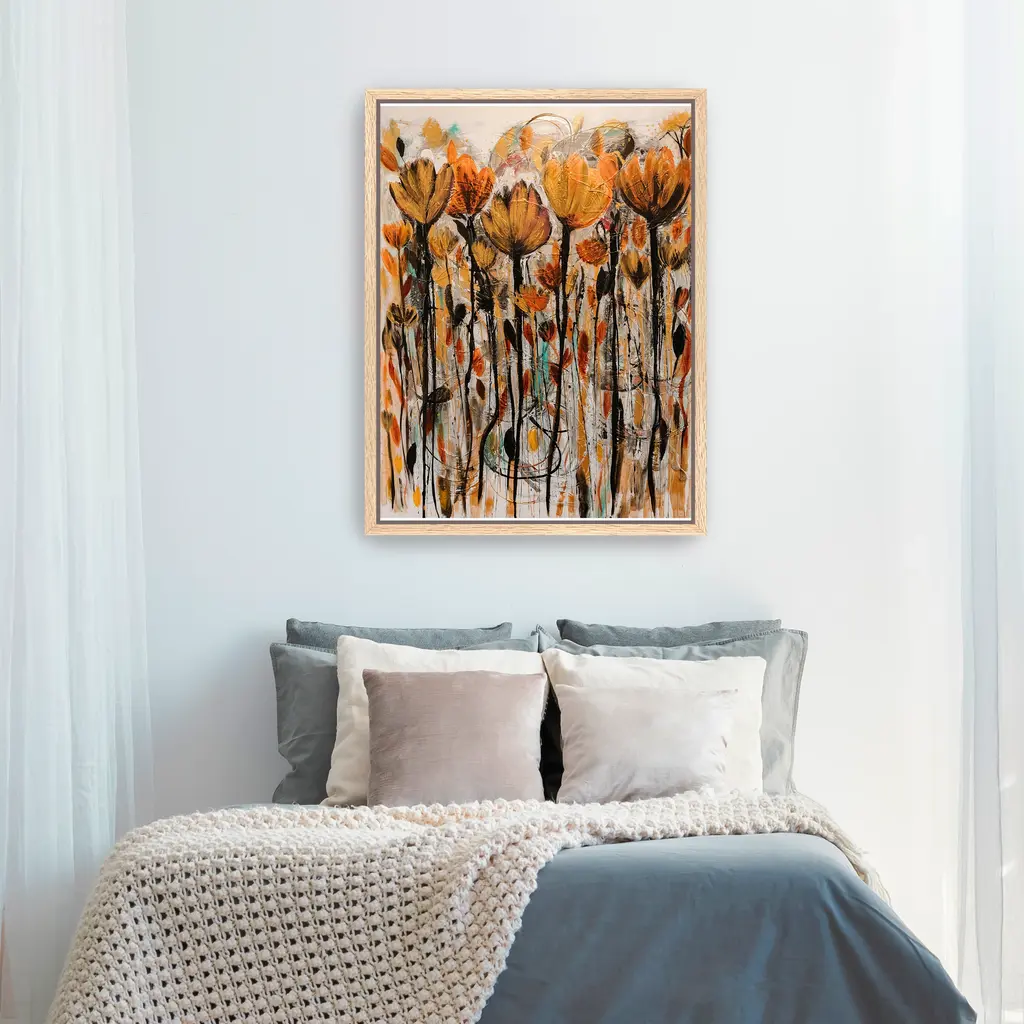 Infuse your space with seasonal charm using this floral fall canvas art print, showcasing warm autumn blooms in rich earthy tones. Ideal for fall wall art lovers seeking a nature-inspired statement piece. Our Gallery Wrap Canvas Prints are proudly assembled with high quality materials in California, USA. Each piece is printed on a thick, archival grade canvas using Giclee technology. It is then hand-stretched by our experienced artisans over solid wood bars, which will not warp over time. The final product is a piece personally crafted for you to confidently display on your wall. Care and Assembly: Ensure that the location of your piece has little to no exposure to heat, sunlight, and moisture. Wipe clean, only if needed. Each piece includes a sawtooth hanger to hang on your wall vertically.