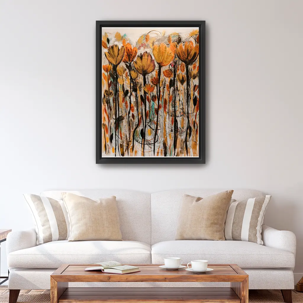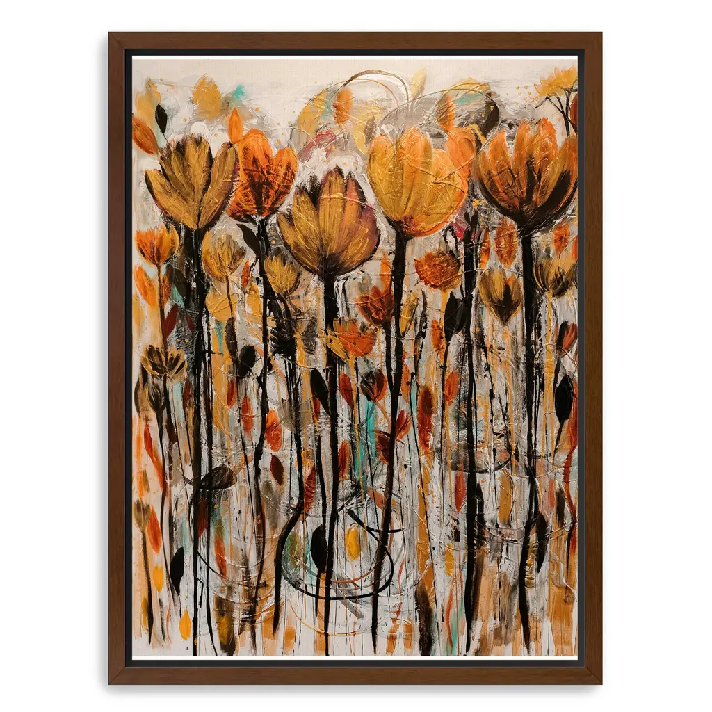 Infuse your space with seasonal charm using this floral fall canvas art print, showcasing warm autumn blooms in rich earthy tones. Ideal for fall wall art lovers seeking a nature-inspired statement piece. Our Gallery Wrap Canvas Prints are proudly assembled with high quality materials in California, USA. Each piece is printed on a thick, archival grade canvas using Giclee technology. It is then hand-stretched by our experienced artisans over solid wood bars, which will not warp over time. The final product is a piece personally crafted for you to confidently display on your wall. Care and Assembly: Ensure that the location of your piece has little to no exposure to heat, sunlight, and moisture. Wipe clean, only if needed. Each piece includes a sawtooth hanger to hang on your wall vertically.