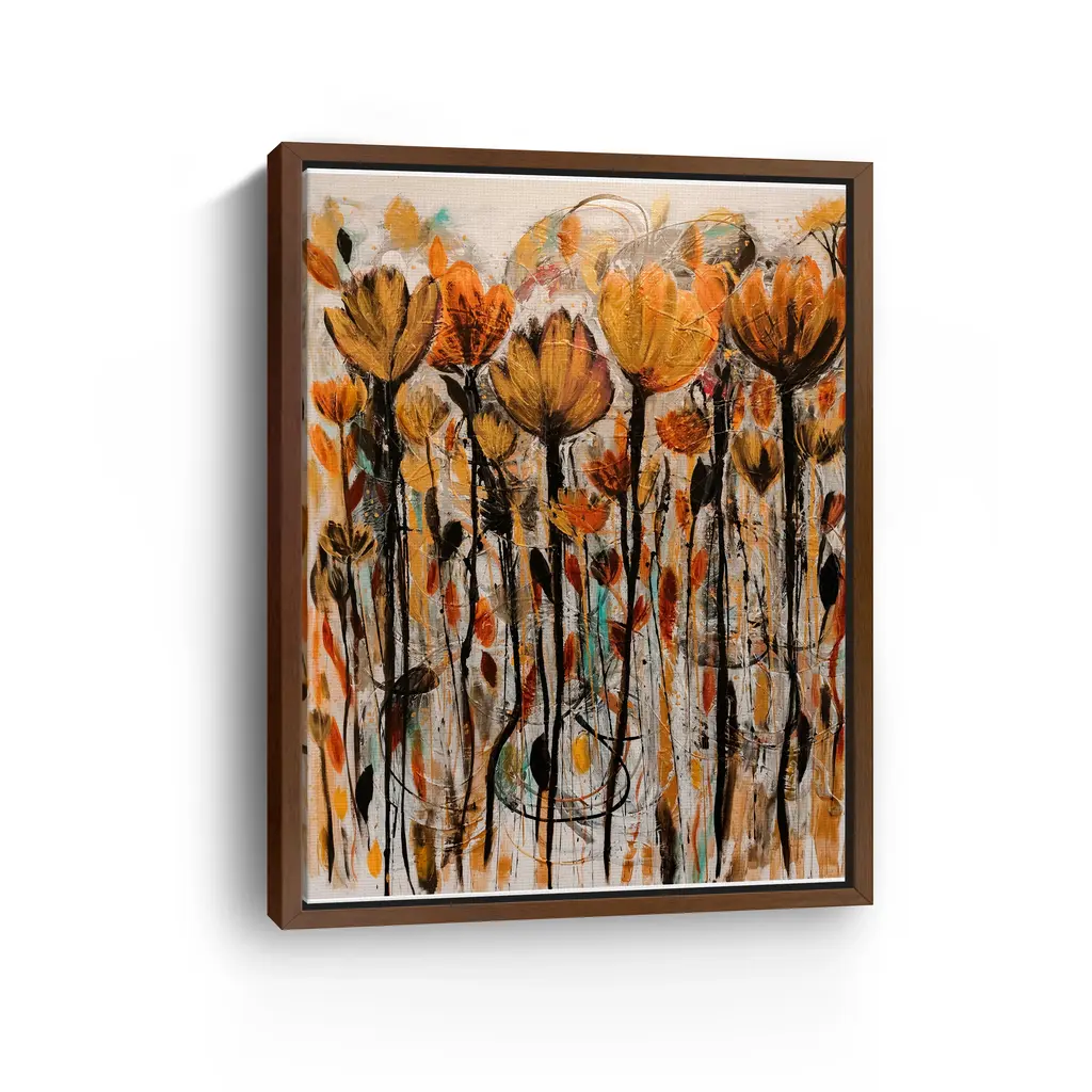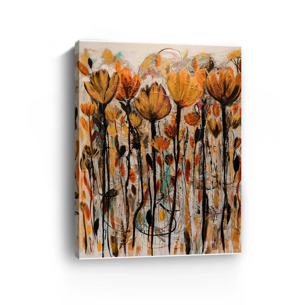 Infuse your space with seasonal charm using this floral fall canvas art print, showcasing warm autumn blooms in rich earthy tones. Ideal for fall wall art lovers seeking a nature-inspired statement piece. Our Gallery Wrap Canvas Prints are proudly assembled with high quality materials in California, USA. Each piece is printed on a thick, archival grade canvas using Giclee technology. It is then hand-stretched by our experienced artisans over solid wood bars, which will not warp over time. The final product is a piece personally crafted for you to confidently display on your wall. Care and Assembly: Ensure that the location of your piece has little to no exposure to heat, sunlight, and moisture. Wipe clean, only if needed. Each piece includes a sawtooth hanger to hang on your wall vertically.
