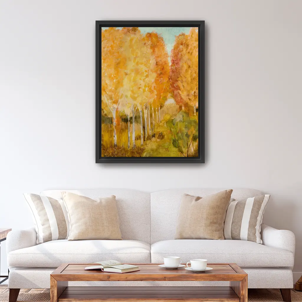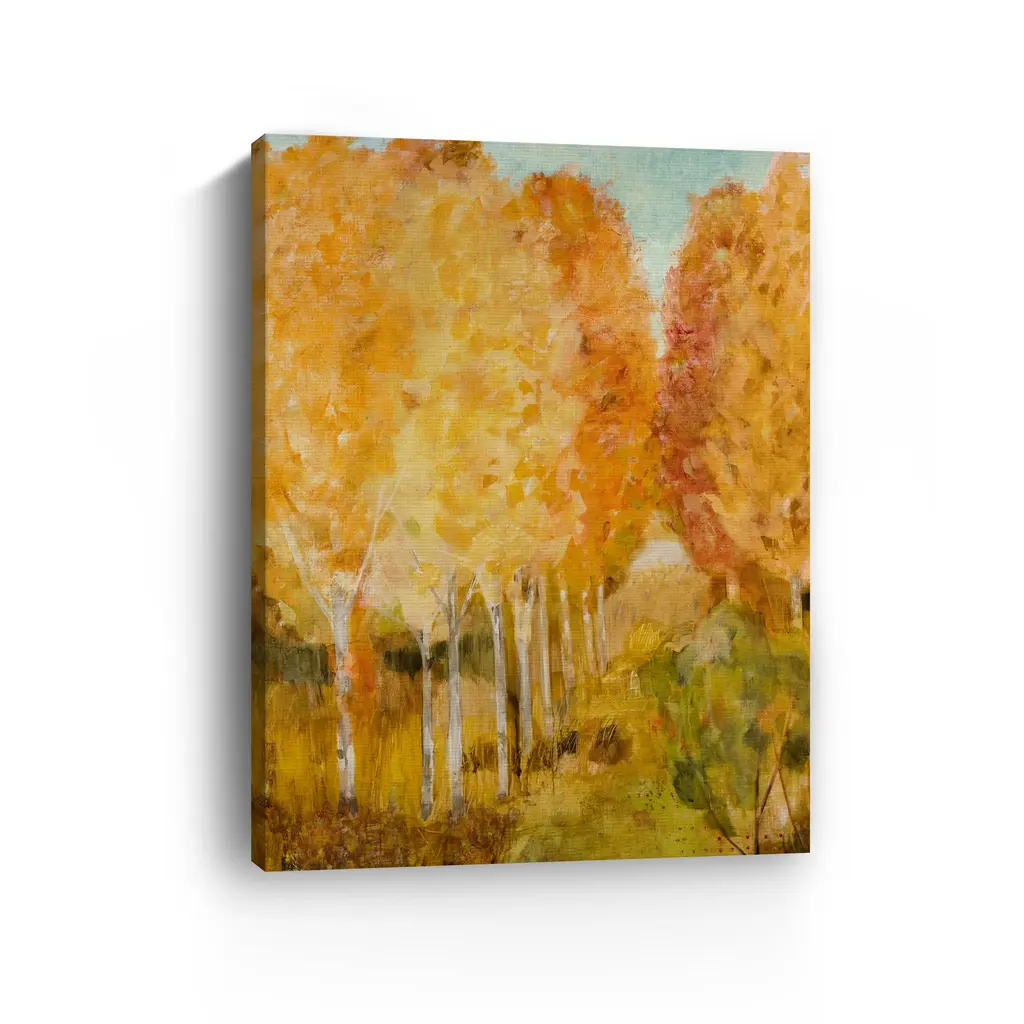 Bring the beauty of autumn indoors with this landscape fall canvas art print that captures the season's serene charm. The rich hues and tranquil scenery evoke cozy walks through nature, making it a captivating focal point for seasonal decor. Perfect for lovers of fall landscapes and rustic wall art inspiration. Our Gallery Wrap Canvas Prints are proudly assembled with high quality materials in California, USA. Each piece is printed on a thick, archival grade canvas using Giclee technology. It is then hand-stretched by our experienced artisans over solid wood bars, which will not warp over time. The final product is a piece personally crafted for you to confidently display on your wall. Care and Assembly: Ensure that the location of your piece has little to no exposure to heat, sunlight, and moisture. Wipe clean, only if needed. Each piece includes a sawtooth hanger to hang on your wall vertically.