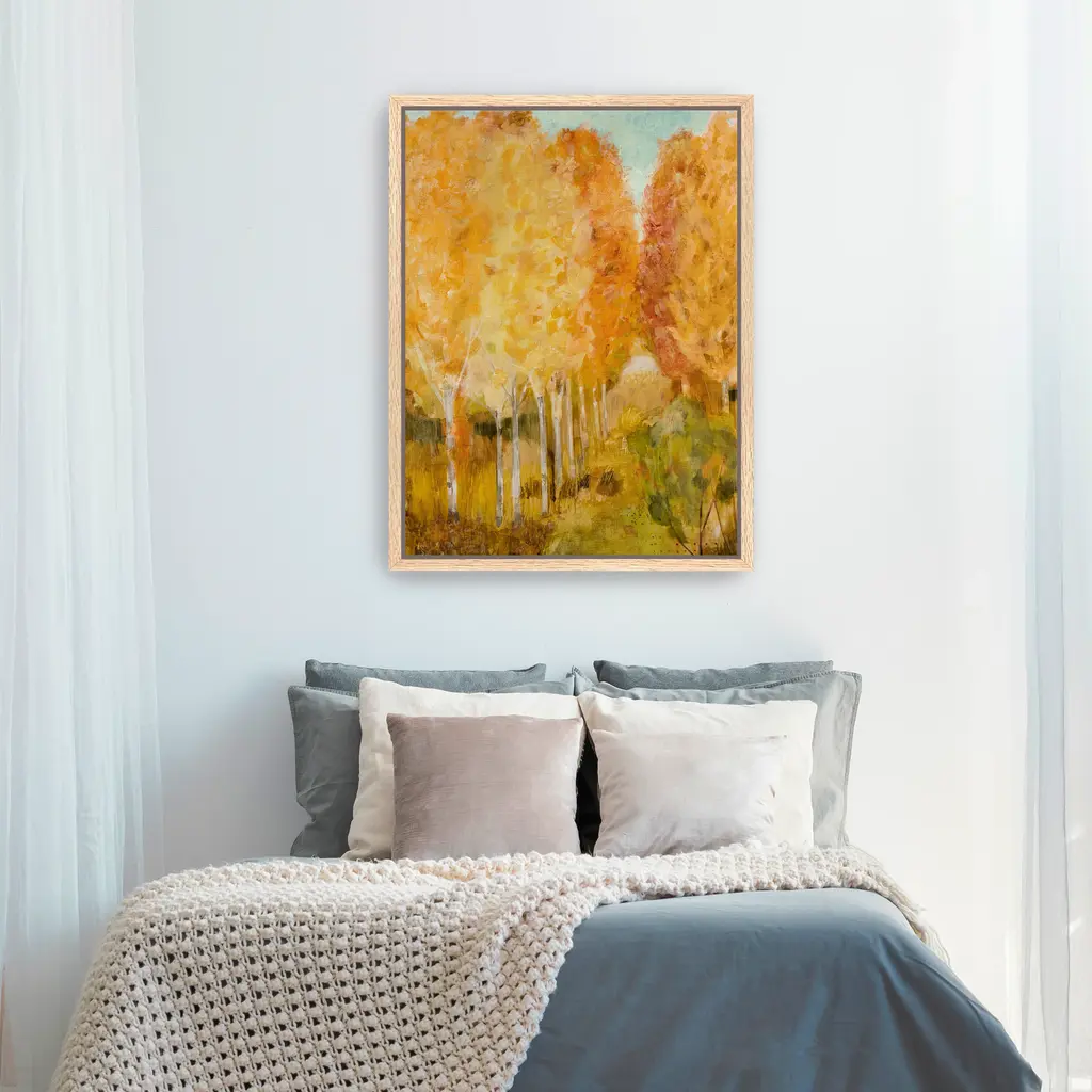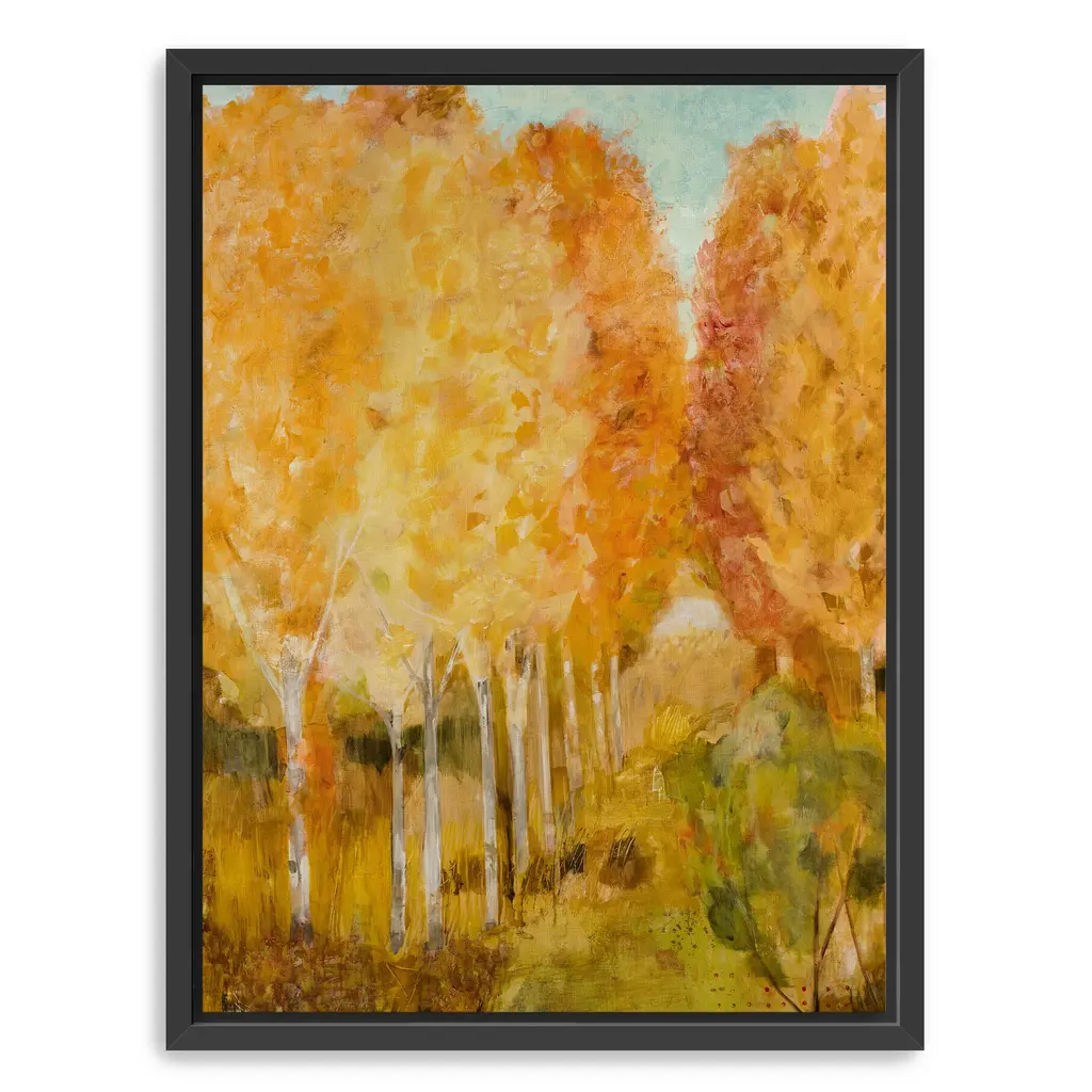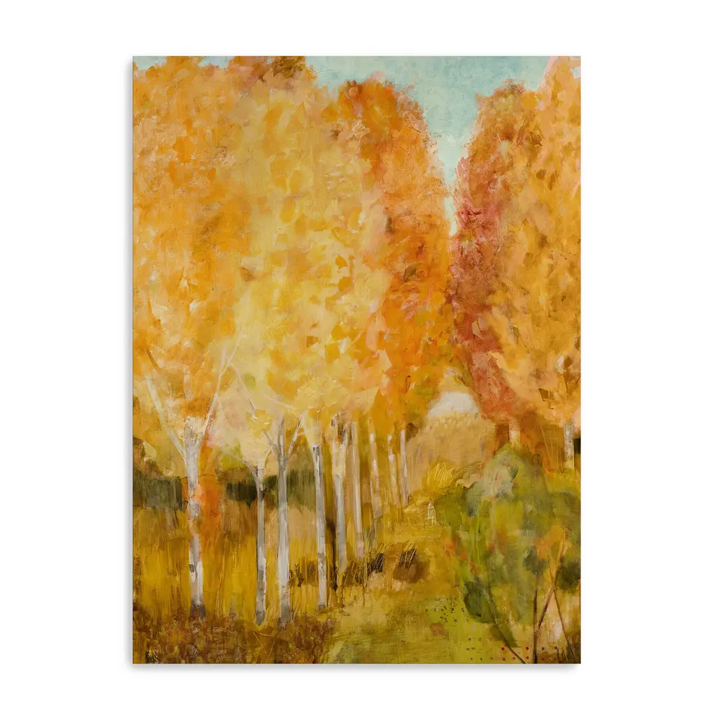Bring the beauty of autumn indoors with this landscape fall canvas art print that captures the season's serene charm. The rich hues and tranquil scenery evoke cozy walks through nature, making it a captivating focal point for seasonal decor. Perfect for lovers of fall landscapes and rustic wall art inspiration. Our Gallery Wrap Canvas Prints are proudly assembled with high quality materials in California, USA. Each piece is printed on a thick, archival grade canvas using Giclee technology. It is then hand-stretched by our experienced artisans over solid wood bars, which will not warp over time. The final product is a piece personally crafted for you to confidently display on your wall. Care and Assembly: Ensure that the location of your piece has little to no exposure to heat, sunlight, and moisture. Wipe clean, only if needed. Each piece includes a sawtooth hanger to hang on your wall vertically.