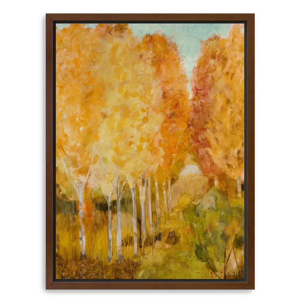 Bring the beauty of autumn indoors with this landscape fall canvas art print that captures the season's serene charm. The rich hues and tranquil scenery evoke cozy walks through nature, making it a captivating focal point for seasonal decor. Perfect for lovers of fall landscapes and rustic wall art inspiration. Our Gallery Wrap Canvas Prints are proudly assembled with high quality materials in California, USA. Each piece is printed on a thick, archival grade canvas using Giclee technology. It is then hand-stretched by our experienced artisans over solid wood bars, which will not warp over time. The final product is a piece personally crafted for you to confidently display on your wall. Care and Assembly: Ensure that the location of your piece has little to no exposure to heat, sunlight, and moisture. Wipe clean, only if needed. Each piece includes a sawtooth hanger to hang on your wall vertically.