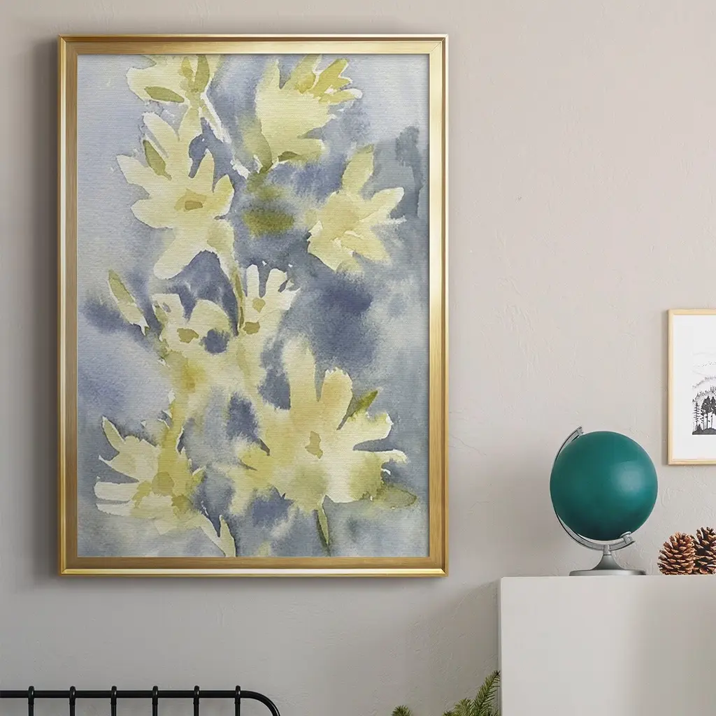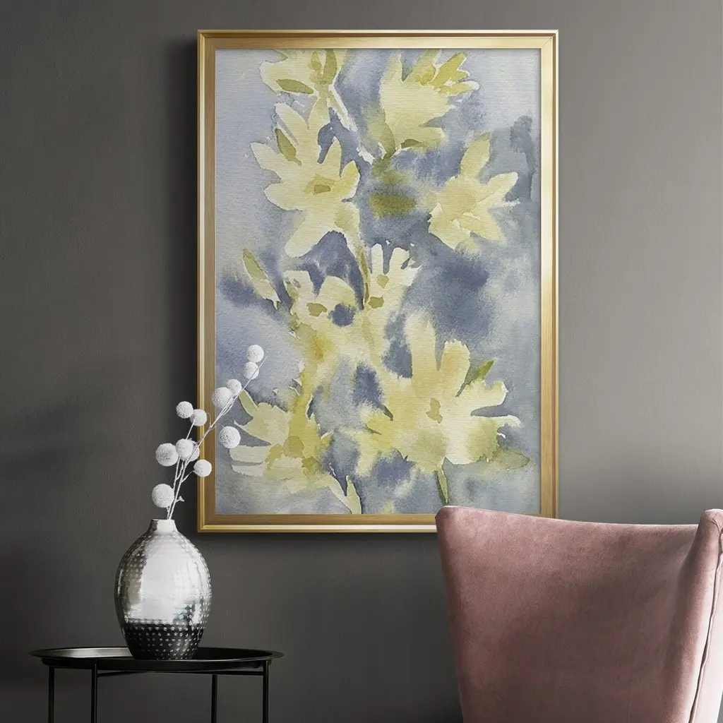 Forsythia Blooms I Premium Framed Print - Ready to Hang A Premium Framed Print created to last. Framed in distressed wood and available in an array of sizes and colors Featuring a beveled a solid wood stretcher bar, each piece comes ready to hand 4 SIZES AVAILABLE 30.5''X42.5'' - Overall Size 26.5'X36.5'' - Overall Size 22.5''x30.5'' - Overall Size 18.5''x24.5'' - Overall Size Each piece is made to order. Each piece comes with hanging hardware. Made in the USA Ready to Hang