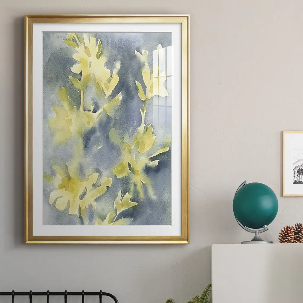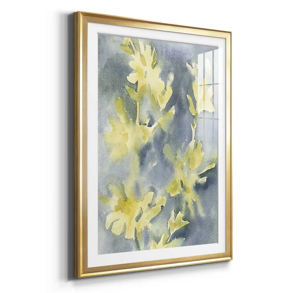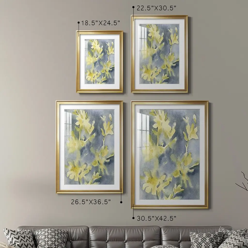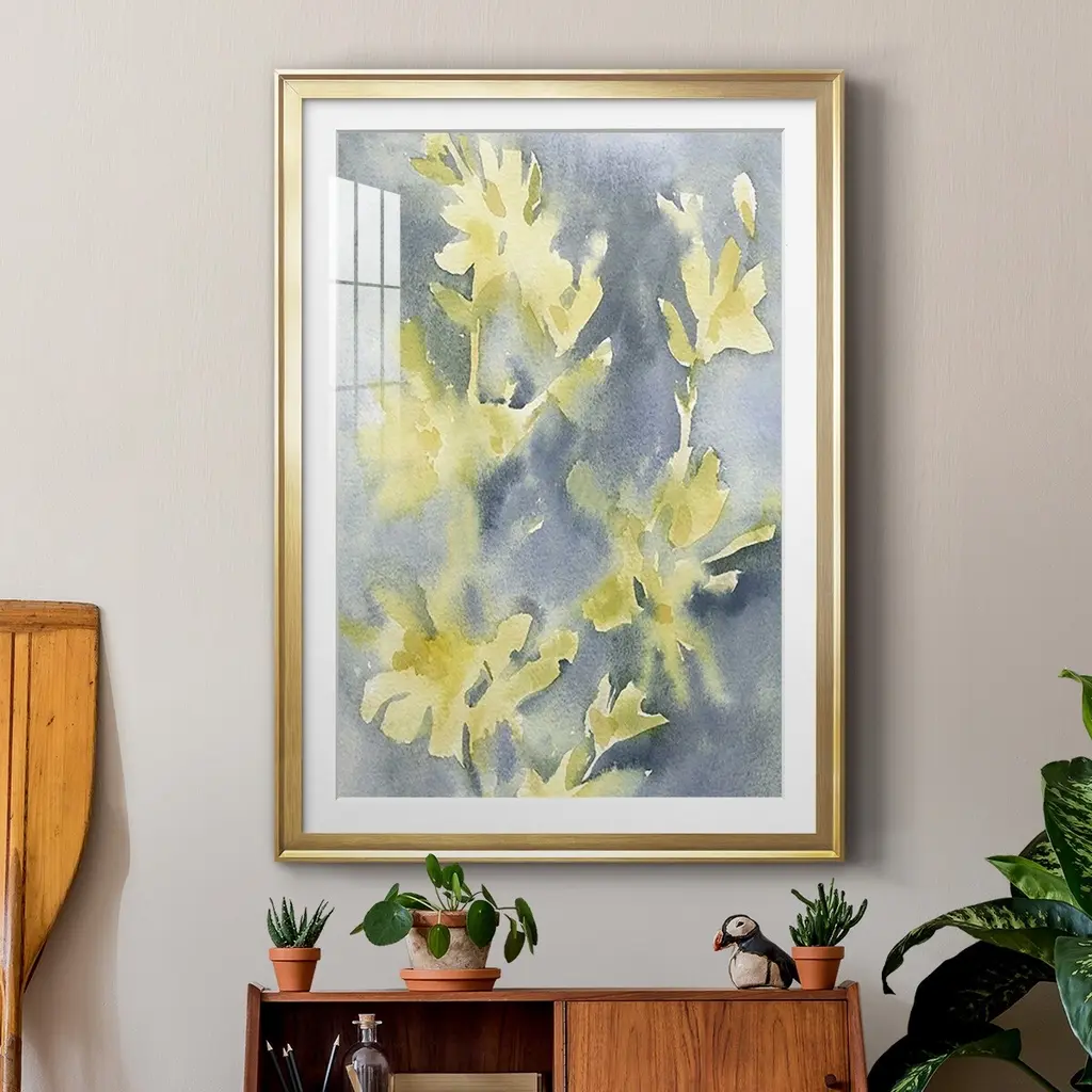 Forsythia Blooms II Premium Framed Print - Ready to Hang A Premium Framed Print created to last. Framed in distressed wood and available in an array of sizes and colors Featuring a beveled a solid wood stretcher bar, each piece comes ready to hand 4 SIZES AVAILABLE 30.5''X42.5'' - Overall Size 26.5'X36.5'' - Overall Size 22.5''x30.5'' - Overall Size 18.5''x24.5'' - Overall Size Each piece is made to order. Each piece comes with hanging hardware. Made in the USA Ready to Hang Giclee Paper Print Acrylic Glass Beveled Matt Board
