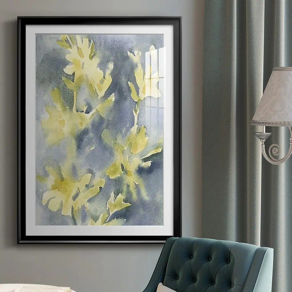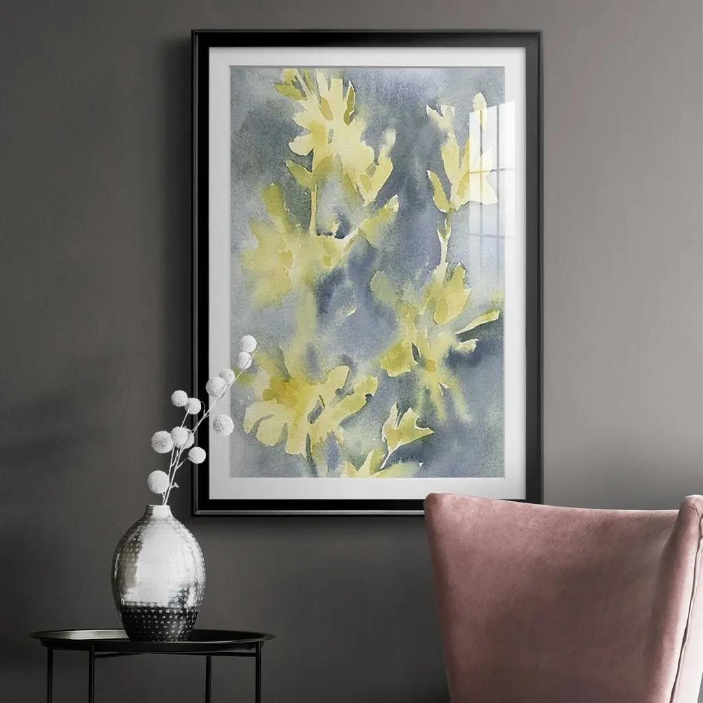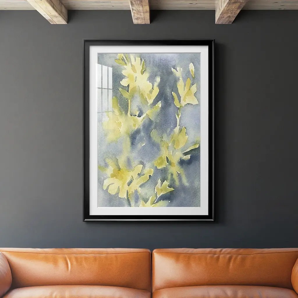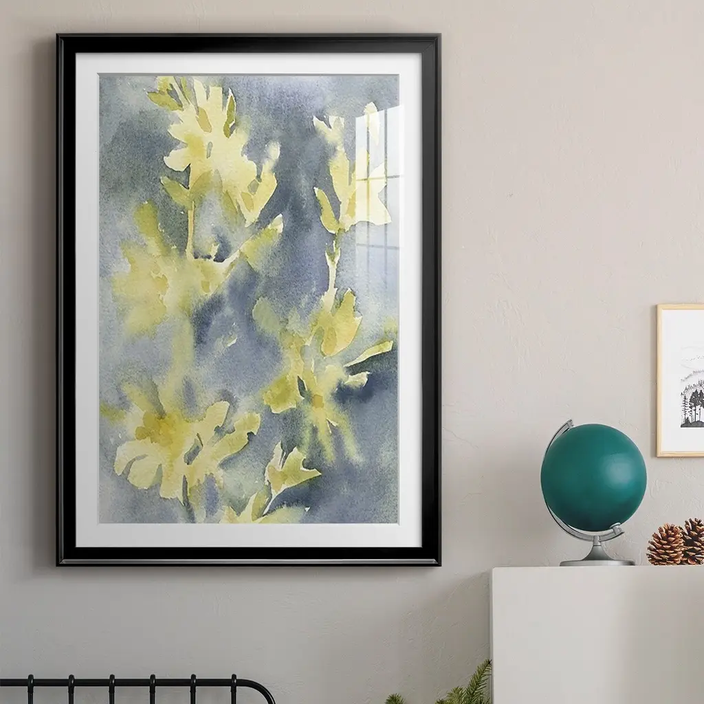 Forsythia Blooms II Premium Framed Print - Ready to Hang A Premium Framed Print created to last. Framed in distressed wood and available in an array of sizes and colors Featuring a beveled a solid wood stretcher bar, each piece comes ready to hand 4 SIZES AVAILABLE 30.5''X42.5'' - Overall Size 26.5'X36.5'' - Overall Size 22.5''x30.5'' - Overall Size 18.5''x24.5'' - Overall Size Each piece is made to order. Each piece comes with hanging hardware. Made in the USA Ready to Hang Giclee Paper Print Acrylic Glass Beveled Matt Board