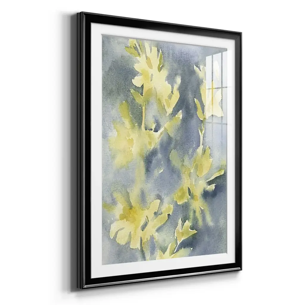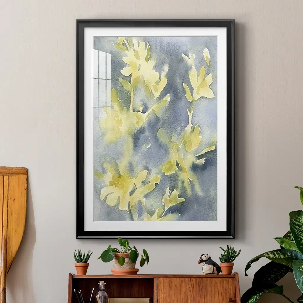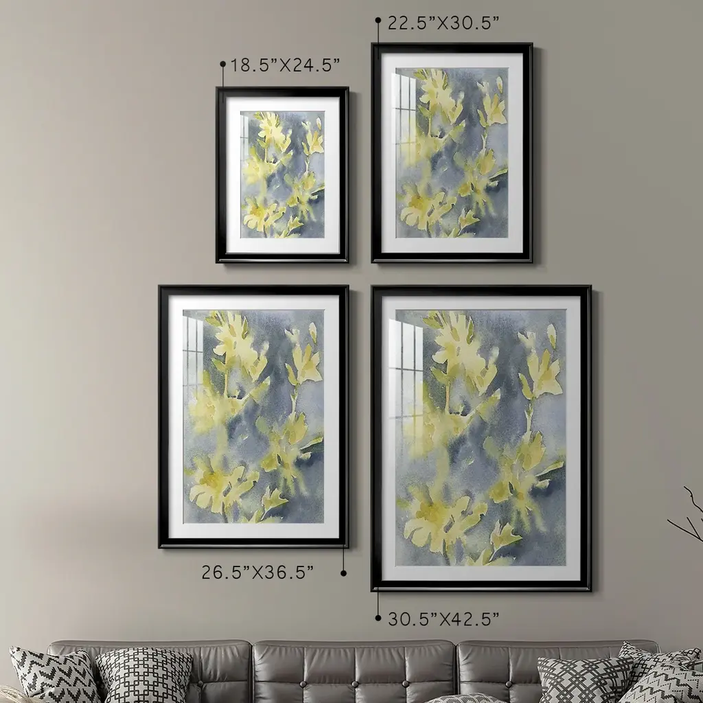 Forsythia Blooms II Premium Framed Print - Ready to Hang A Premium Framed Print created to last. Framed in distressed wood and available in an array of sizes and colors Featuring a beveled a solid wood stretcher bar, each piece comes ready to hand 4 SIZES AVAILABLE 30.5''X42.5'' - Overall Size 26.5'X36.5'' - Overall Size 22.5''x30.5'' - Overall Size 18.5''x24.5'' - Overall Size Each piece is made to order. Each piece comes with hanging hardware. Made in the USA Ready to Hang Giclee Paper Print Acrylic Glass Beveled Matt Board