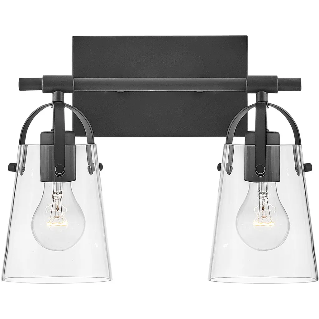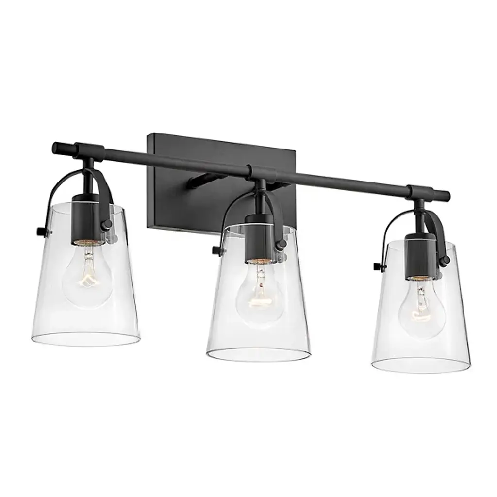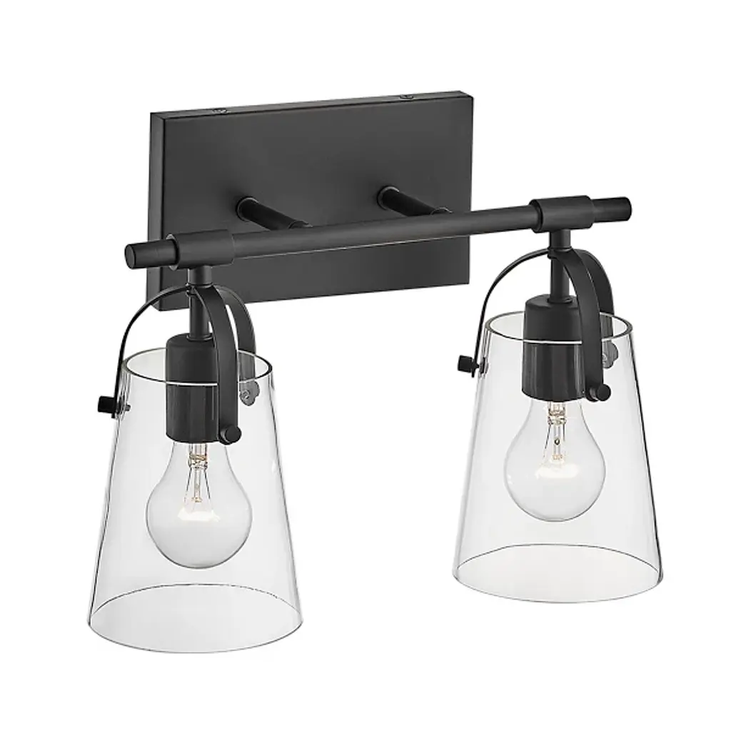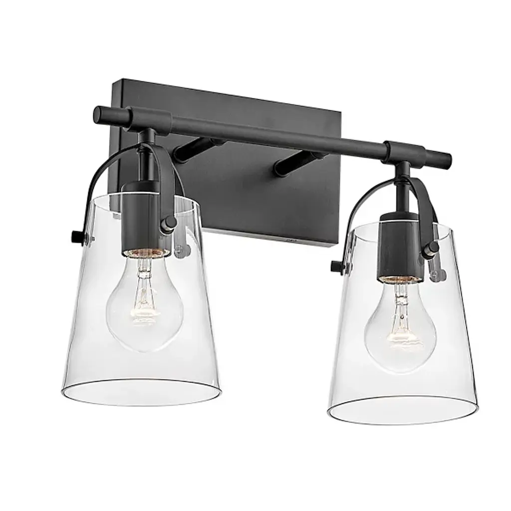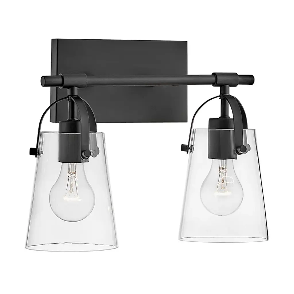 The Foster Vanity Light by Hinkley Lighting is a clean, contemporary lighting fixture for your bathroom. Efficiency is the goal here, with smooth, clean lines and soft curves. A sleek, unassuming backplate mounts a single smooth rod which holds up two powerful bulbs. Each of the series of lights is enclosed in a clear glass shade which gently hangs over the bulb, guaranteeing the light spreads throughout your bathroom space, whether that be over a vanity or elsewhere.