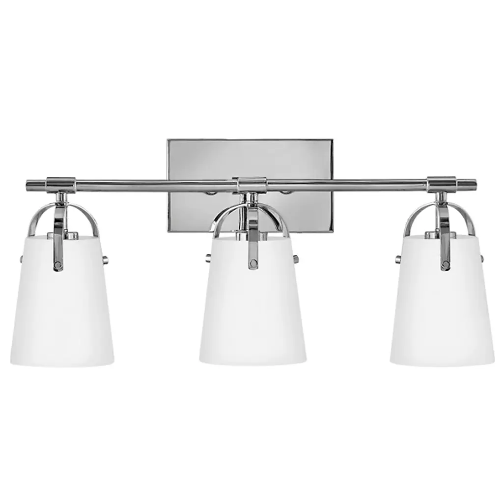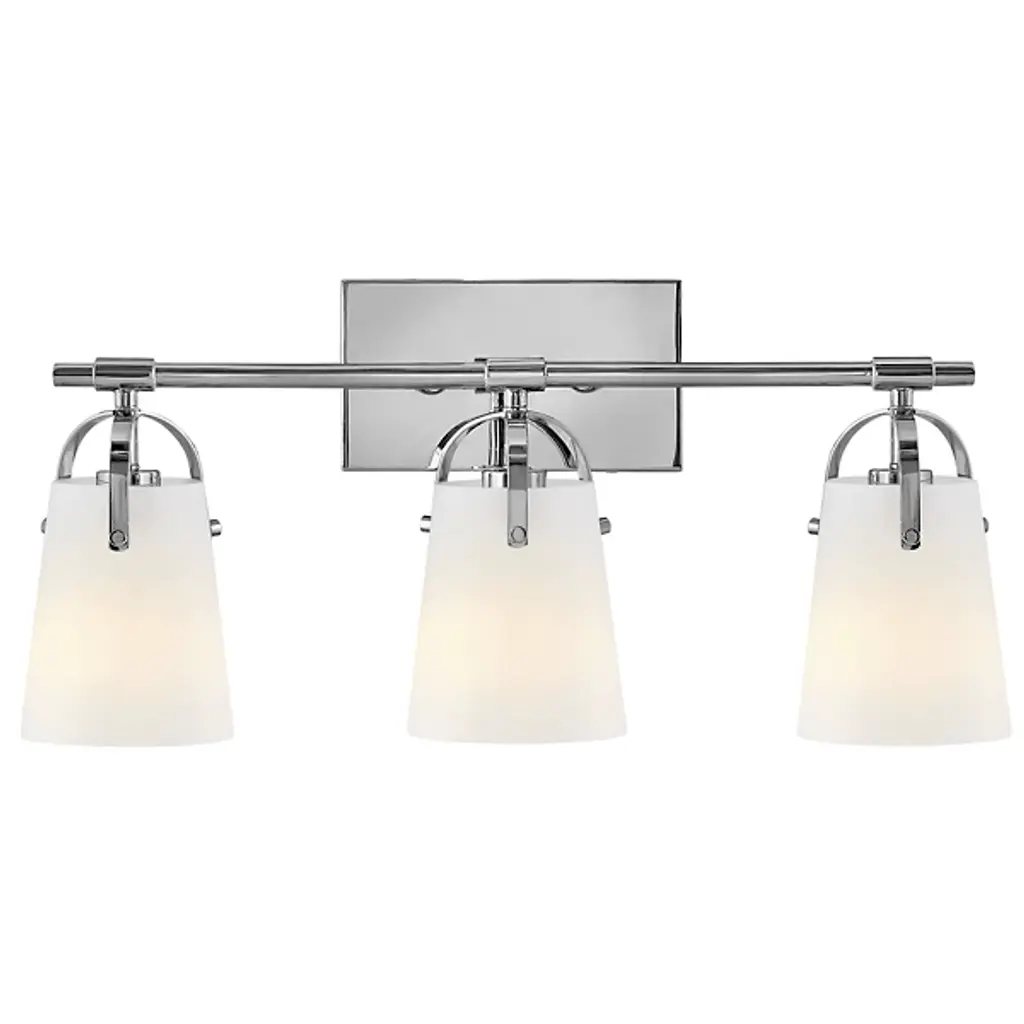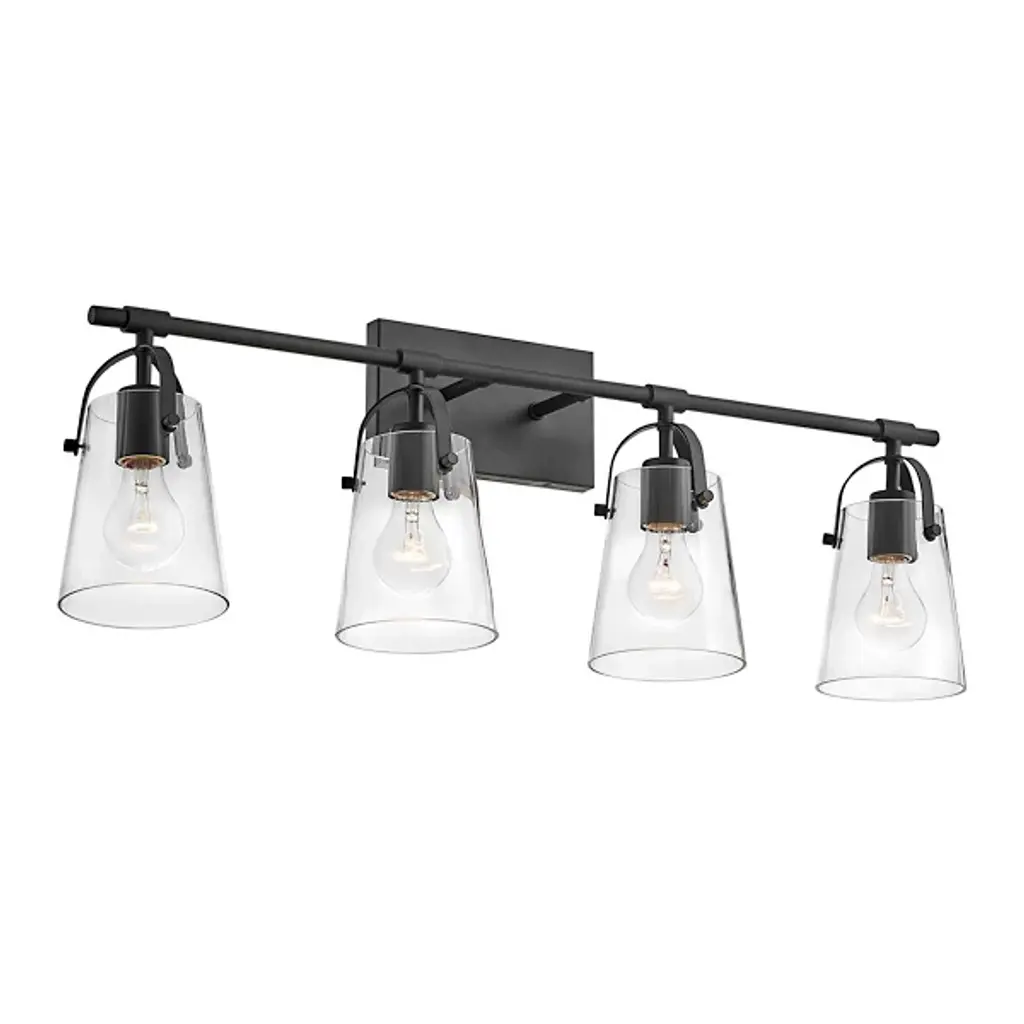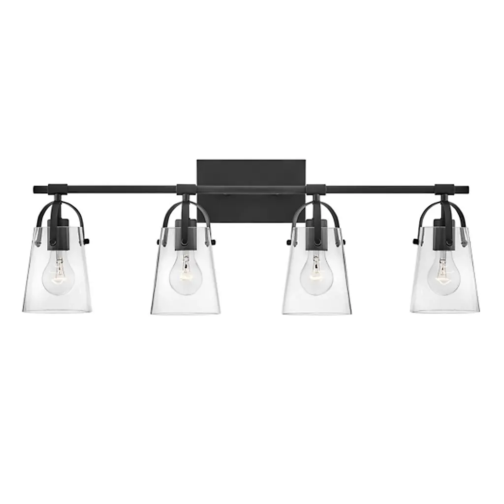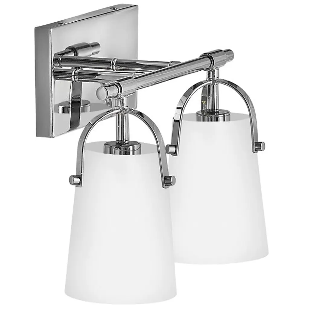 The Foster Vanity Light by Hinkley Lighting is a clean, contemporary lighting fixture for your bathroom. Efficiency is the goal here, with smooth, clean lines and soft curves. A sleek, unassuming backplate mounts a single smooth rod which holds up two powerful bulbs. Each of the series of lights is enclosed in a clear glass shade which gently hangs over the bulb, guaranteeing the light spreads throughout your bathroom space, whether that be over a vanity or elsewhere.