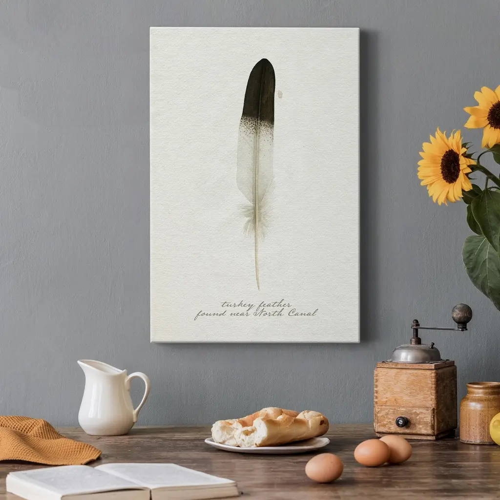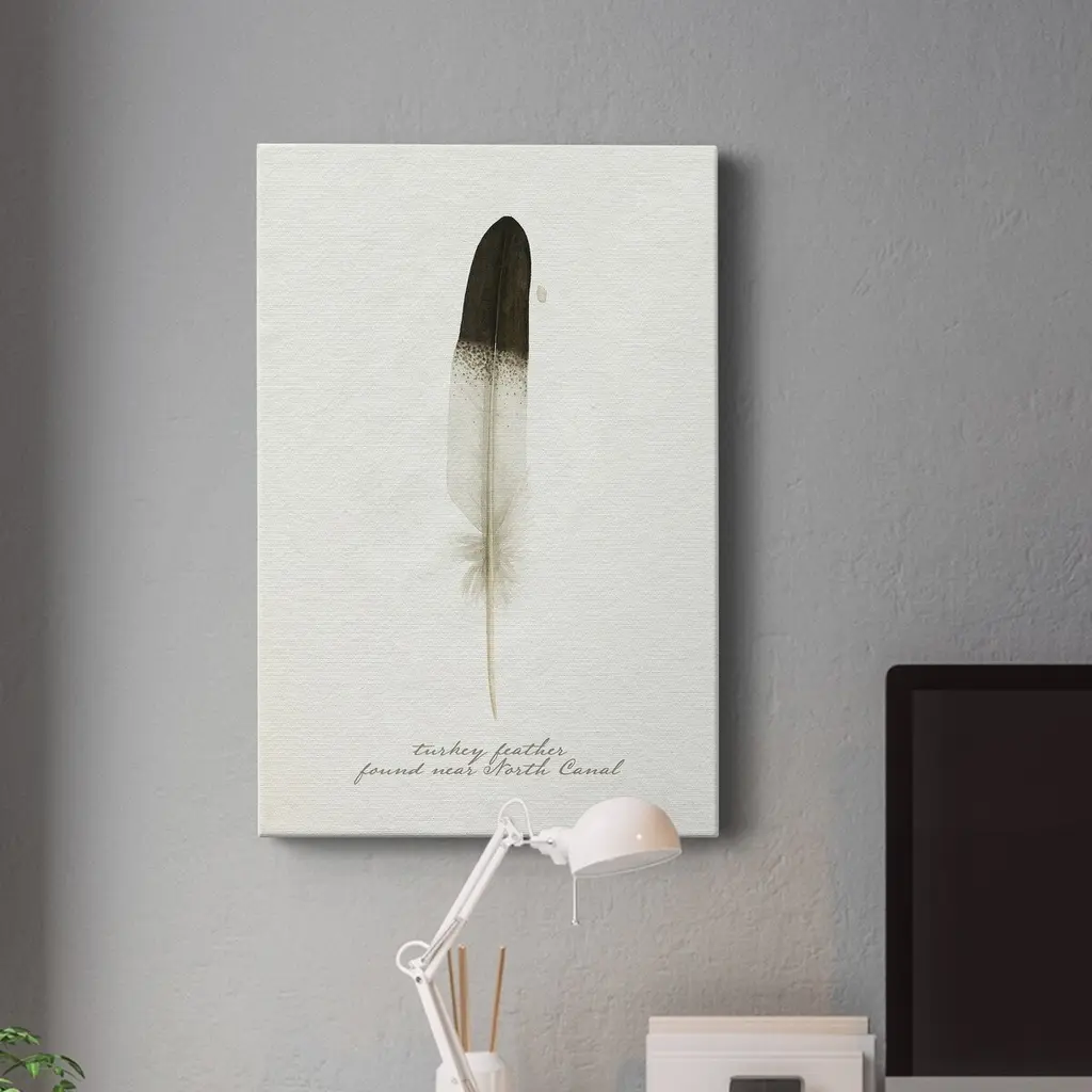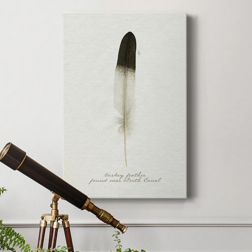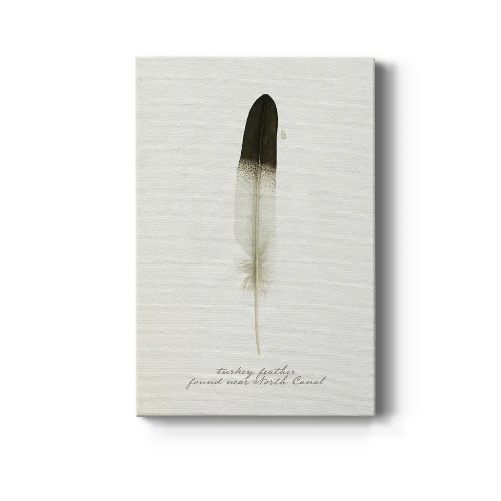 Found Feather IV Premium Gallery Wrapped Canvas - Ready to Hang A premium hand stretched gallery wrapped canvas print created to last. Featuring a beveled a solid wood stretcher bar, each piece comes ready to hand 5 SIZES AVAILABLE 8''X12'' - Overall Size 16'X20'' - Overall Size 24''x32'' - Overall Size 30''x40'' - Overall Size 36''x48'' - Overall Size Each piece is made to order. Built to Last Each piece comes ready to hang Solid wood stretcher Fade and Water resistant Made domestically