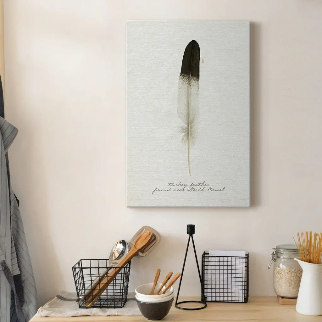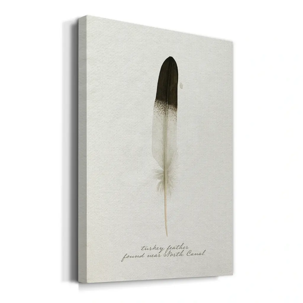Found Feather IV Premium Gallery Wrapped Canvas - Ready to Hang A premium hand stretched gallery wrapped canvas print created to last. Featuring a beveled a solid wood stretcher bar, each piece comes ready to hand 5 SIZES AVAILABLE 8''X12'' - Overall Size 16'X20'' - Overall Size 24''x32'' - Overall Size 30''x40'' - Overall Size 36''x48'' - Overall Size Each piece is made to order. Built to Last Each piece comes ready to hang Solid wood stretcher Fade and Water resistant Made domestically