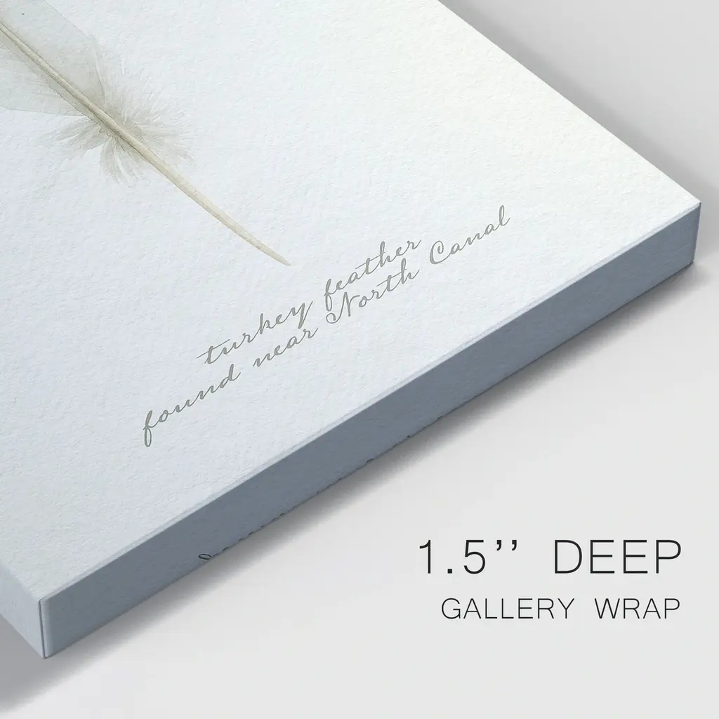 Found Feather IV Premium Gallery Wrapped Canvas - Ready to Hang A premium hand stretched gallery wrapped canvas print created to last. Featuring a beveled a solid wood stretcher bar, each piece comes ready to hand 5 SIZES AVAILABLE 8''X12'' - Overall Size 16'X20'' - Overall Size 24''x32'' - Overall Size 30''x40'' - Overall Size 36''x48'' - Overall Size Each piece is made to order. Built to Last Each piece comes ready to hang Solid wood stretcher Fade and Water resistant Made domestically