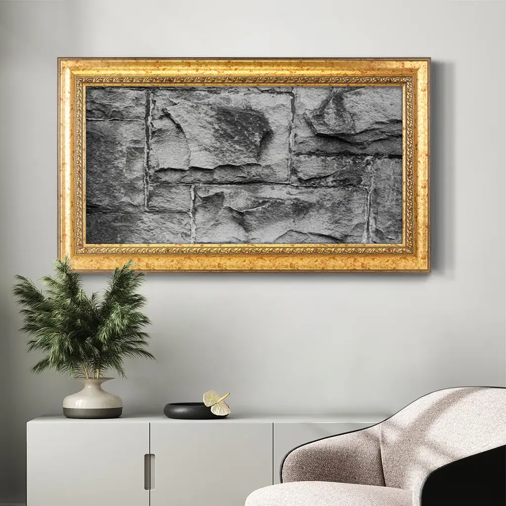 Found Textures VI Premium Framed Canvas- Ready to Hang A Premium Framed Canvas created to last. Framed in distressed wood and available in an array of sizes and colors Featuring a beveled a solid wood stretcher bar, each piece comes ready to hand 3 SIZES AVAILABLE 21''X37'' - Overall Size 25''X45'' - Overall Size 29''x53'' - Overall Size Each piece is made to order. Each piece comes with hanging hardware. Made in the USA Ready to Hang Giclee Paper Print Acrylic Glass Beveled Matt Board