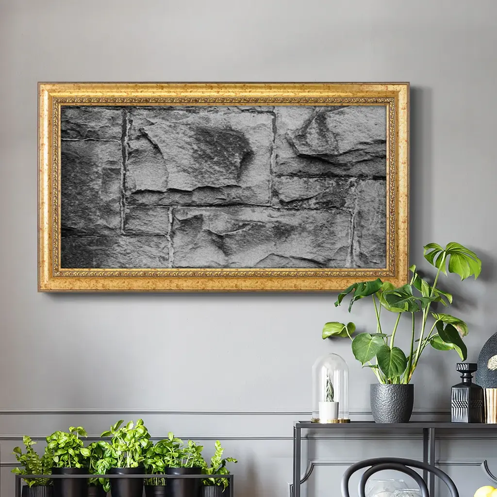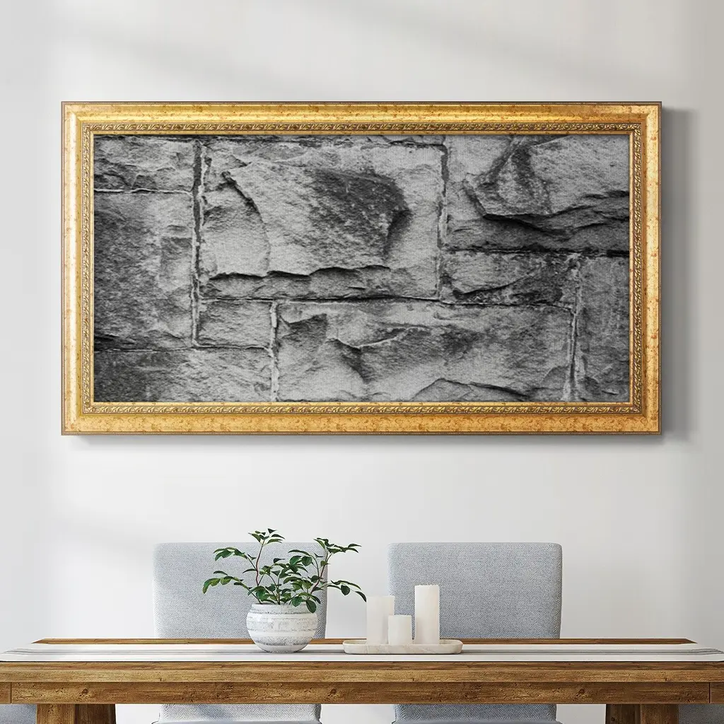 Found Textures VI Premium Framed Canvas- Ready to Hang A Premium Framed Canvas created to last. Framed in distressed wood and available in an array of sizes and colors Featuring a beveled a solid wood stretcher bar, each piece comes ready to hand 3 SIZES AVAILABLE 21''X37'' - Overall Size 25''X45'' - Overall Size 29''x53'' - Overall Size Each piece is made to order. Each piece comes with hanging hardware. Made in the USA Ready to Hang Giclee Paper Print Acrylic Glass Beveled Matt Board