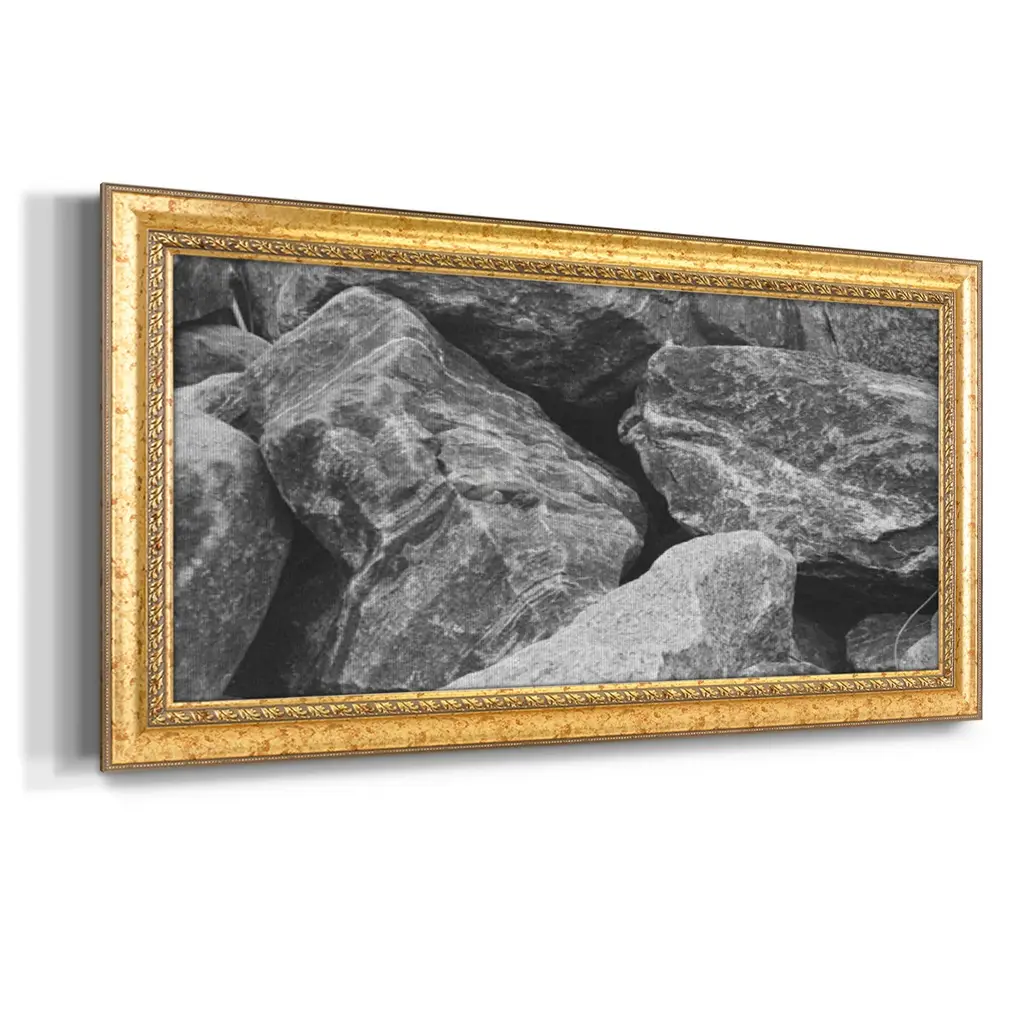 Found Textures VII Premium Framed Canvas- Ready to Hang A Premium Framed Canvas created to last. Framed in distressed wood and available in an array of sizes and colors Featuring a beveled a solid wood stretcher bar, each piece comes ready to hand 3 SIZES AVAILABLE 21''X37'' - Overall Size 25''X45'' - Overall Size 29''x53'' - Overall Size Each piece is made to order. Each piece comes with hanging hardware. Made in the USA Ready to Hang Giclee Paper Print Acrylic Glass Beveled Matt Board