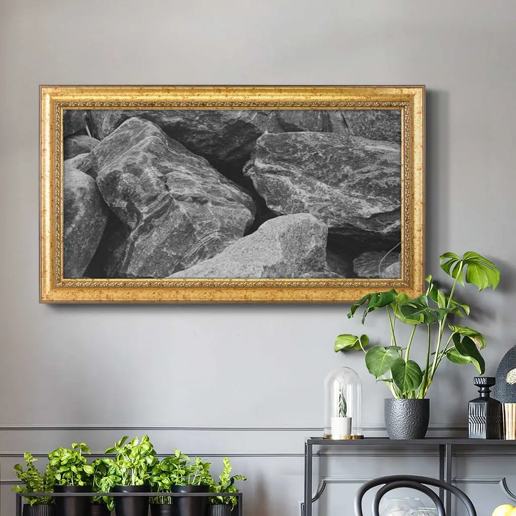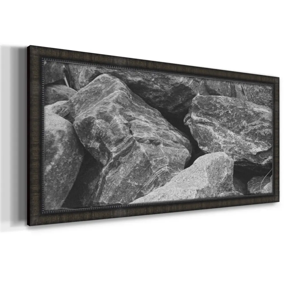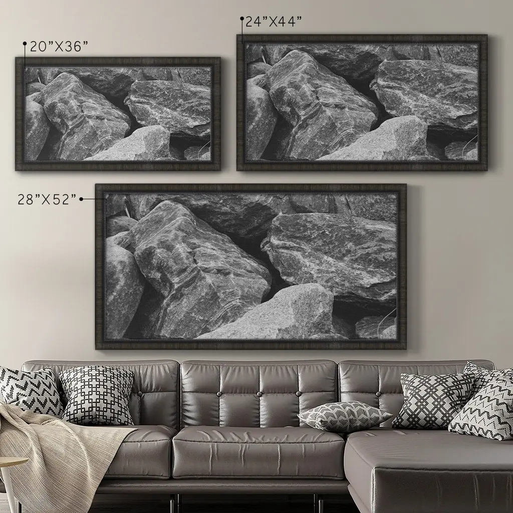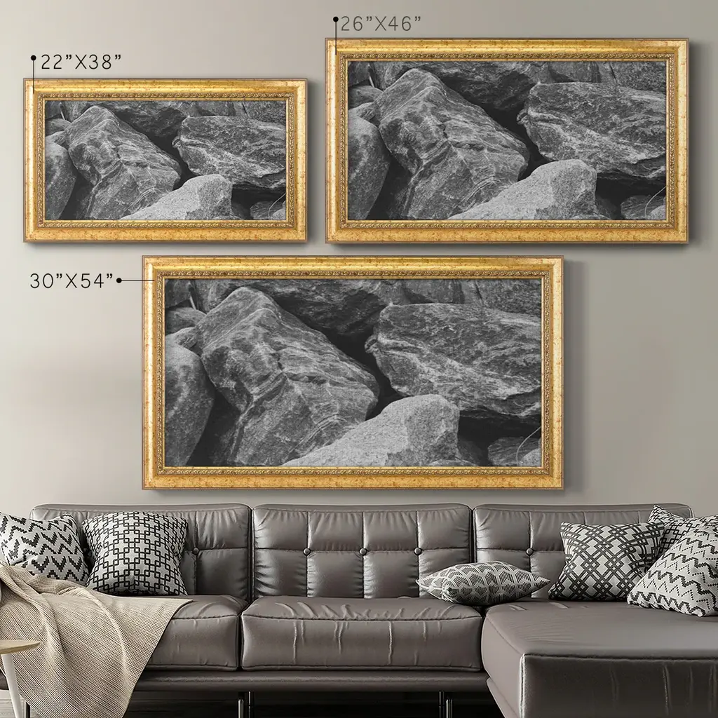 Found Textures VII Premium Framed Canvas- Ready to Hang A Premium Framed Canvas created to last. Framed in distressed wood and available in an array of sizes and colors Featuring a beveled a solid wood stretcher bar, each piece comes ready to hand 3 SIZES AVAILABLE 21''X37'' - Overall Size 25''X45'' - Overall Size 29''x53'' - Overall Size Each piece is made to order. Each piece comes with hanging hardware. Made in the USA Ready to Hang Giclee Paper Print Acrylic Glass Beveled Matt Board