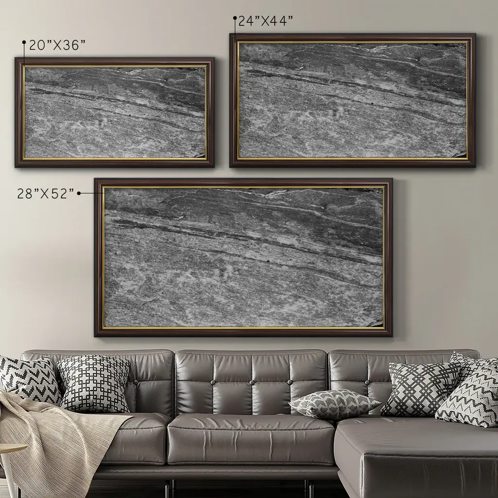 Found Textures VIII Premium Framed Canvas- Ready to Hang A Premium Framed Canvas created to last. Framed in distressed wood and available in an array of sizes and colors Featuring a beveled a solid wood stretcher bar, each piece comes ready to hand 3 SIZES AVAILABLE 21''X37'' - Overall Size 25''X45'' - Overall Size 29''x53'' - Overall Size Each piece is made to order. Each piece comes with hanging hardware. Made in the USA Ready to Hang Giclee Paper Print Acrylic Glass Beveled Matt Board