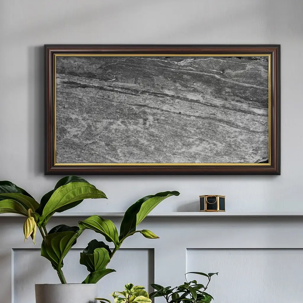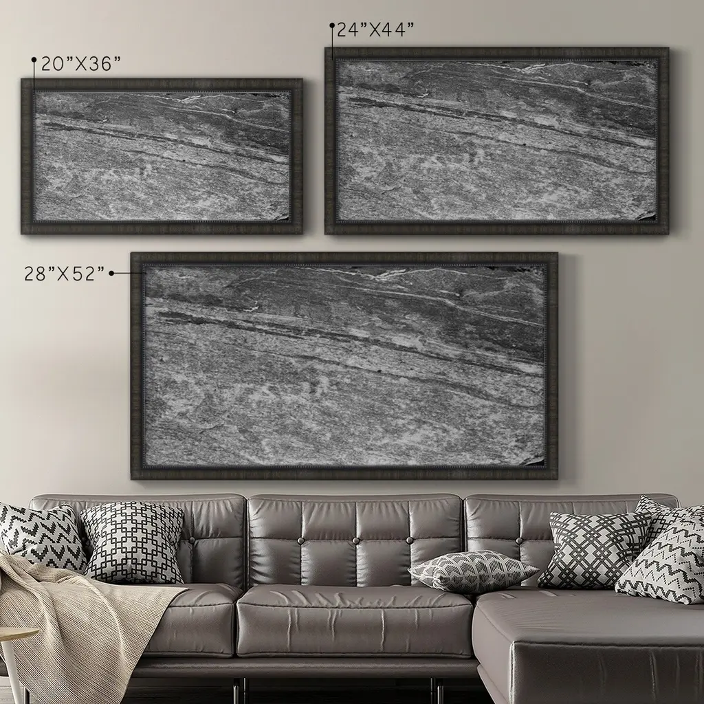 Found Textures VIII Premium Framed Canvas- Ready to Hang A Premium Framed Canvas created to last. Framed in distressed wood and available in an array of sizes and colors Featuring a beveled a solid wood stretcher bar, each piece comes ready to hand 3 SIZES AVAILABLE 21''X37'' - Overall Size 25''X45'' - Overall Size 29''x53'' - Overall Size Each piece is made to order. Each piece comes with hanging hardware. Made in the USA Ready to Hang Giclee Paper Print Acrylic Glass Beveled Matt Board