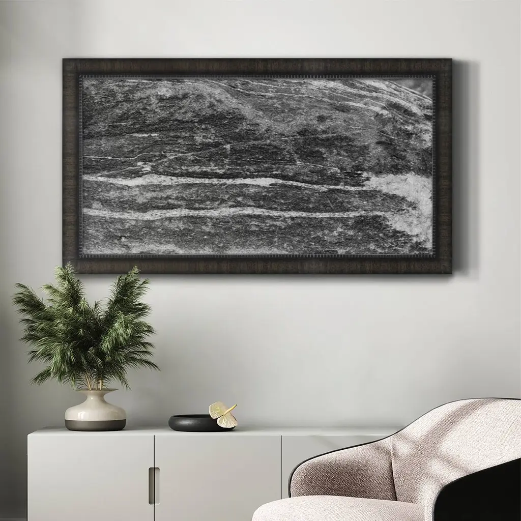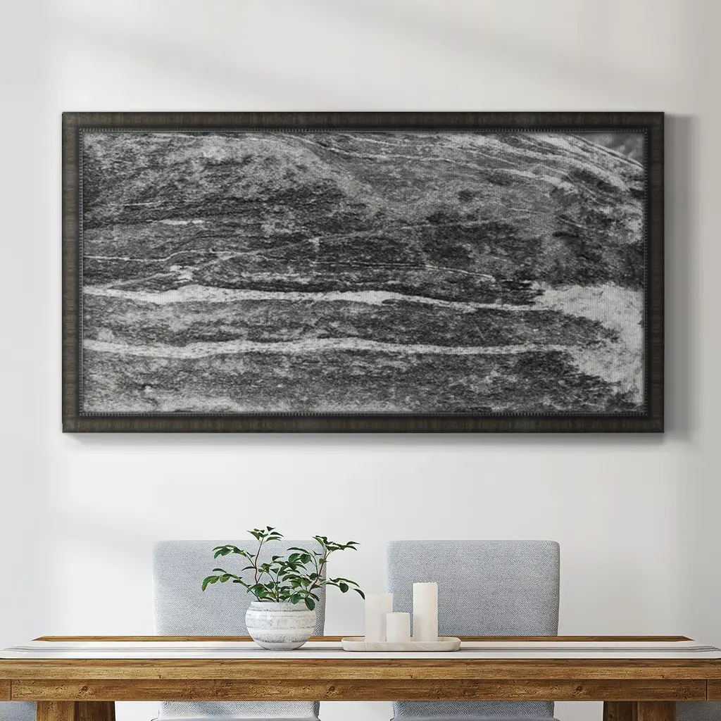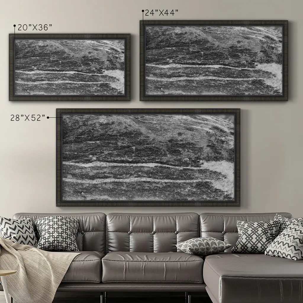 Found Textures X Premium Framed Canvas- Ready to Hang A Premium Framed Canvas created to last. Framed in distressed wood and available in an array of sizes and colors Featuring a beveled a solid wood stretcher bar, each piece comes ready to hand 3 SIZES AVAILABLE 21''X37'' - Overall Size 25''X45'' - Overall Size 29''x53'' - Overall Size Each piece is made to order. Each piece comes with hanging hardware. Made in the USA Ready to Hang Giclee Paper Print Acrylic Glass Beveled Matt Board