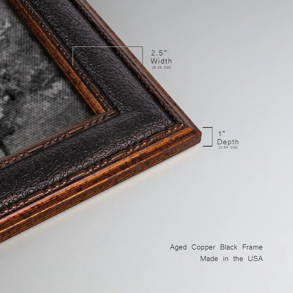 Found Textures XIII Premium Framed Canvas- Ready to Hang A Premium Framed Canvas created to last. Framed in distressed wood and available in an array of sizes and colors Featuring a beveled a solid wood stretcher bar, each piece comes ready to hand 3 SIZES AVAILABLE 21''X37'' - Overall Size 25''X45'' - Overall Size 29''x53'' - Overall Size Each piece is made to order. Each piece comes with hanging hardware. Made in the USA Ready to Hang Giclee Paper Print Acrylic Glass Beveled Matt Board