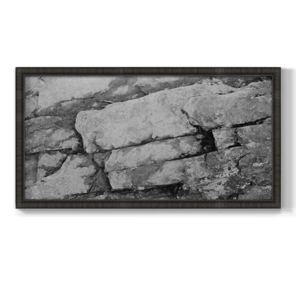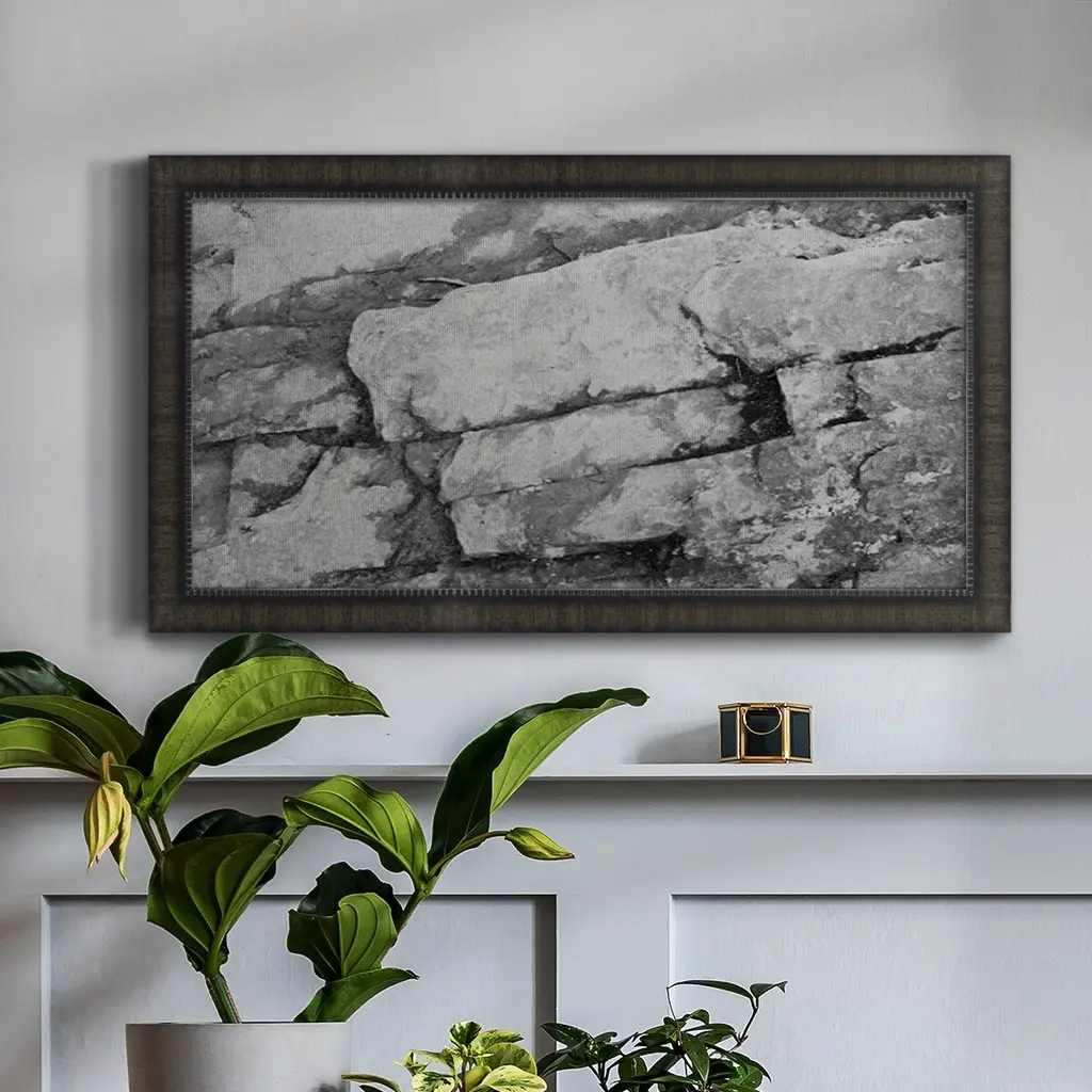 Found Textures XIII Premium Framed Canvas- Ready to Hang A Premium Framed Canvas created to last. Framed in distressed wood and available in an array of sizes and colors Featuring a beveled a solid wood stretcher bar, each piece comes ready to hand 3 SIZES AVAILABLE 21''X37'' - Overall Size 25''X45'' - Overall Size 29''x53'' - Overall Size Each piece is made to order. Each piece comes with hanging hardware. Made in the USA Ready to Hang Giclee Paper Print Acrylic Glass Beveled Matt Board