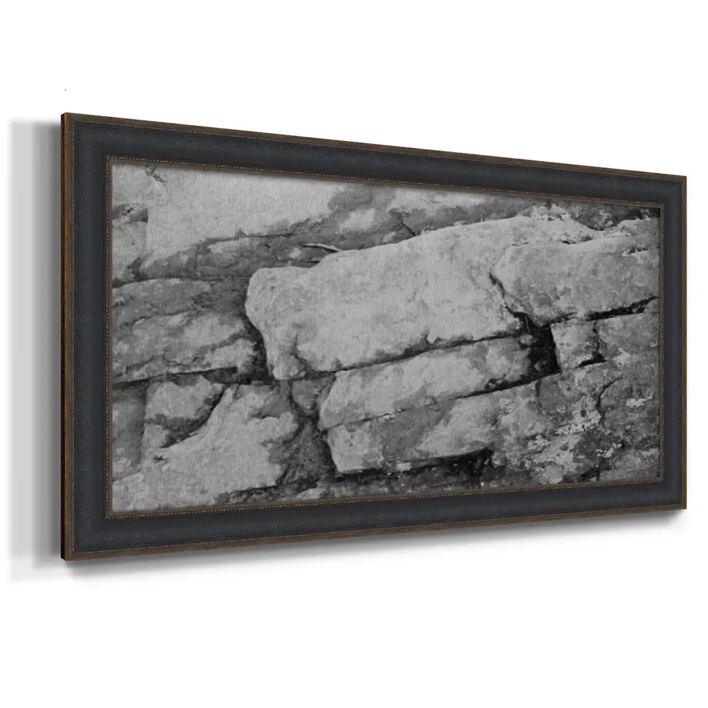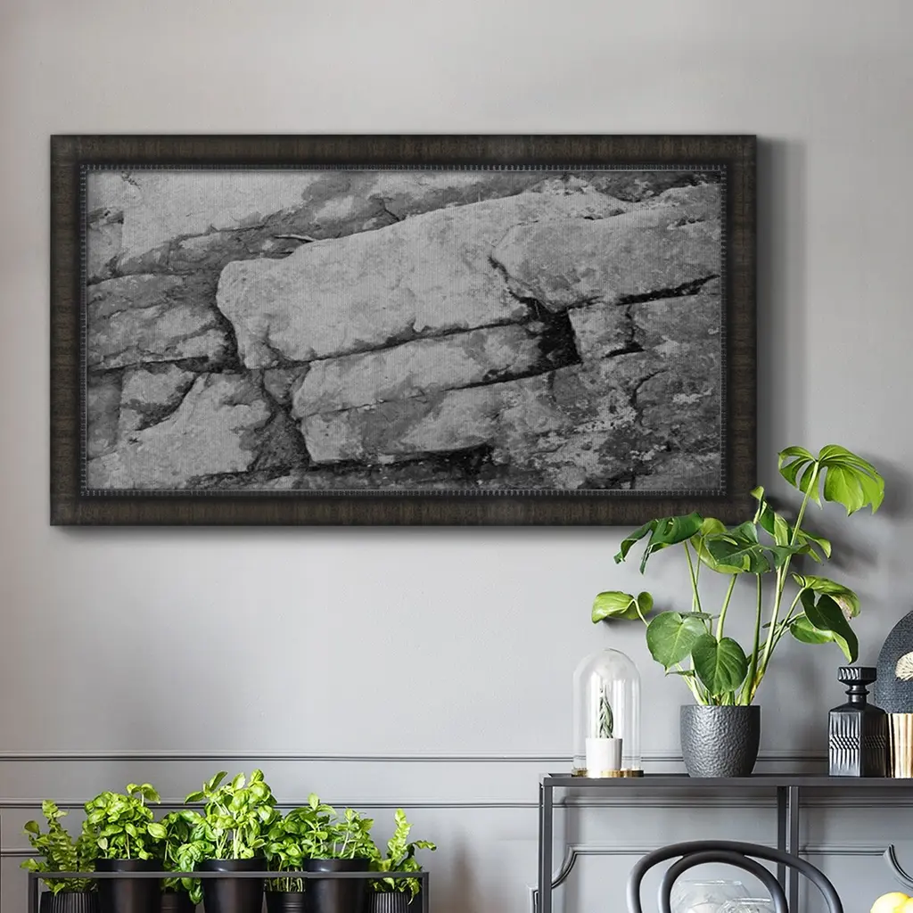 Found Textures XIII Premium Framed Canvas- Ready to Hang A Premium Framed Canvas created to last. Framed in distressed wood and available in an array of sizes and colors Featuring a beveled a solid wood stretcher bar, each piece comes ready to hand 3 SIZES AVAILABLE 21''X37'' - Overall Size 25''X45'' - Overall Size 29''x53'' - Overall Size Each piece is made to order. Each piece comes with hanging hardware. Made in the USA Ready to Hang Giclee Paper Print Acrylic Glass Beveled Matt Board