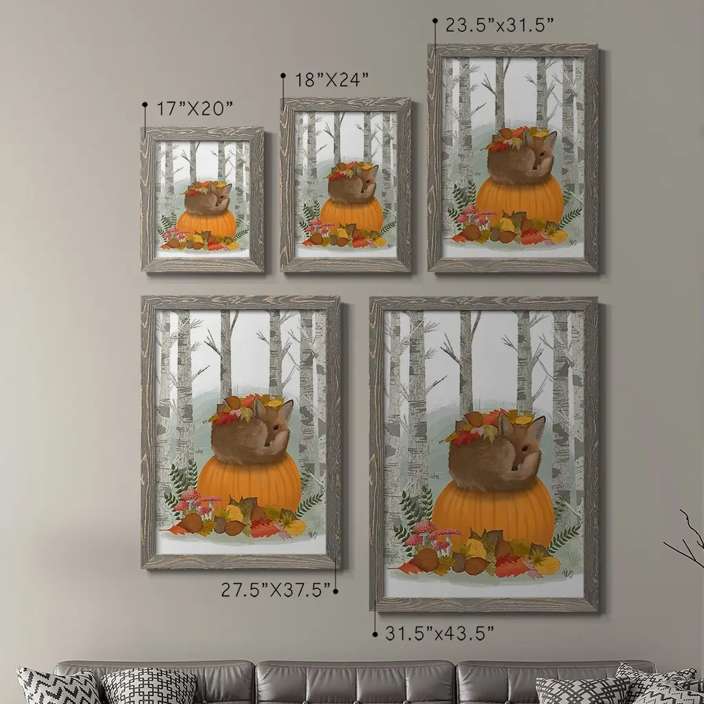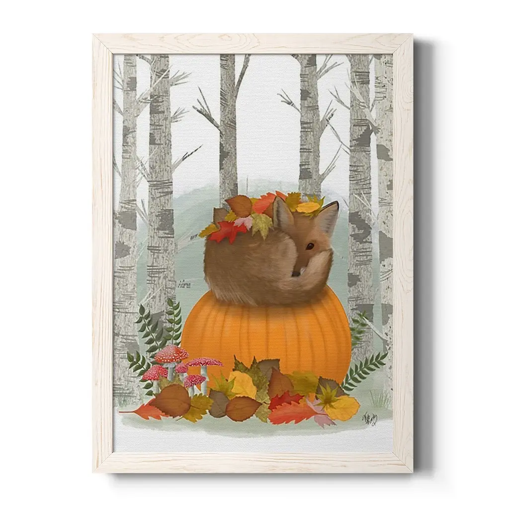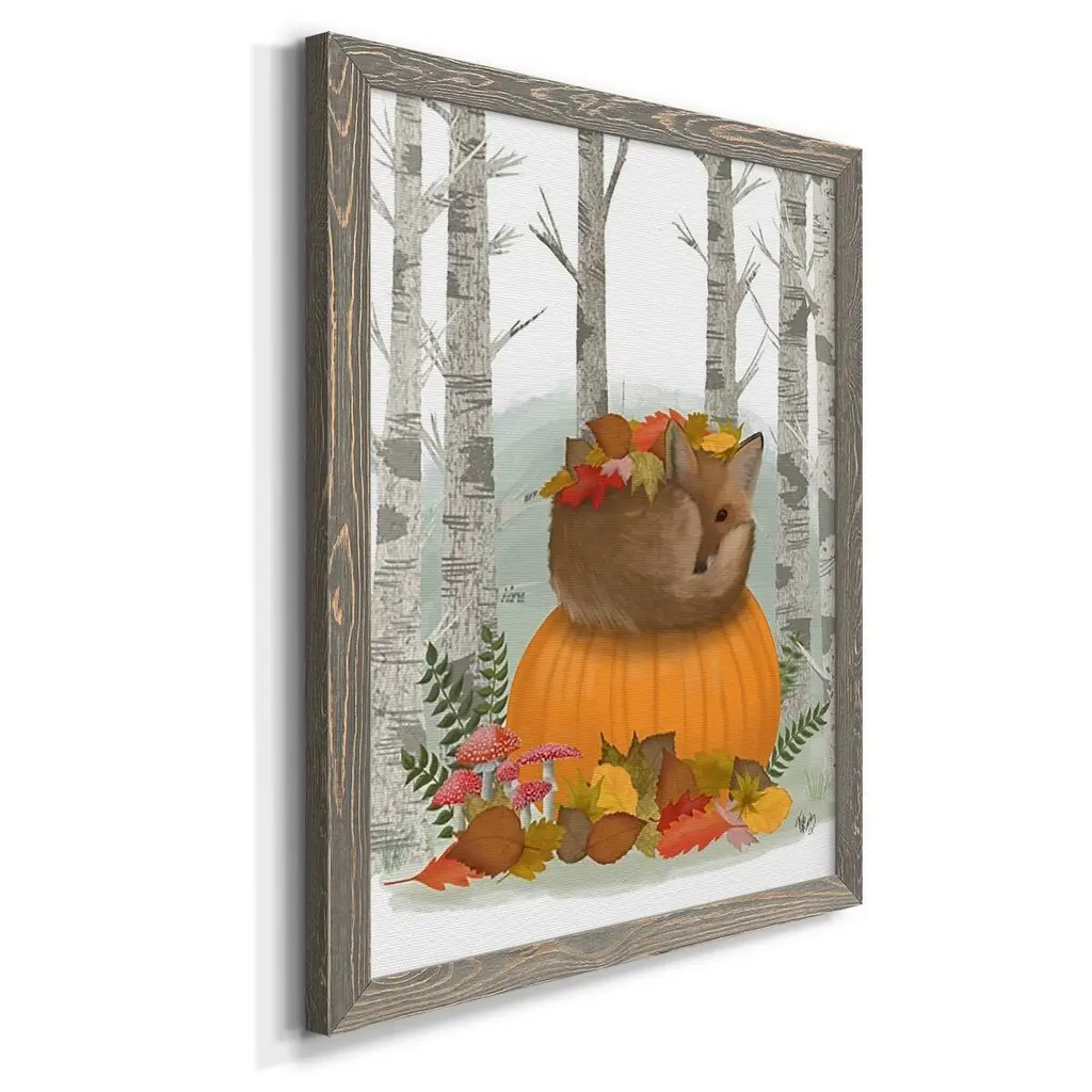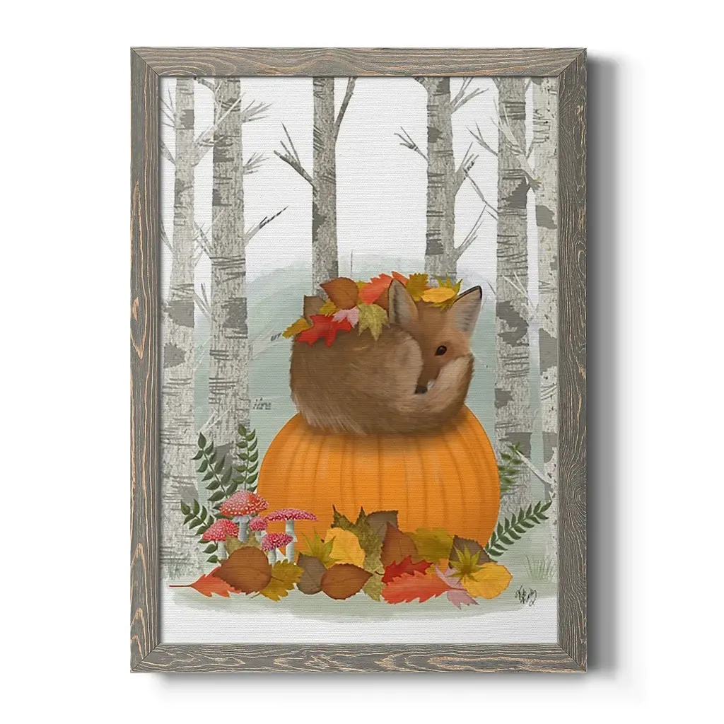 Fox Curled On Pumpkin-Premium Framed Canvas - Ready To Hang - 31.5x43.5 - Grey